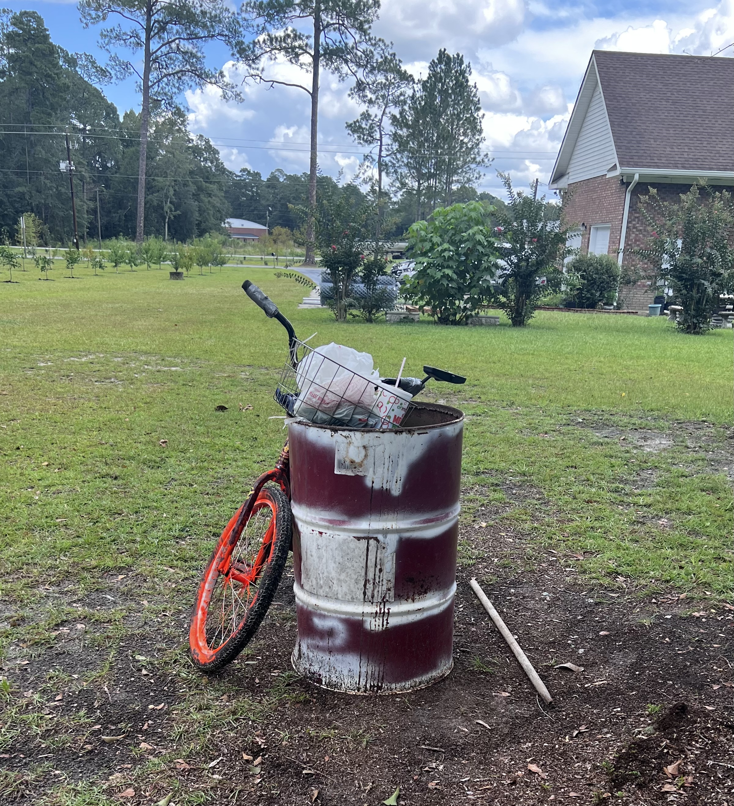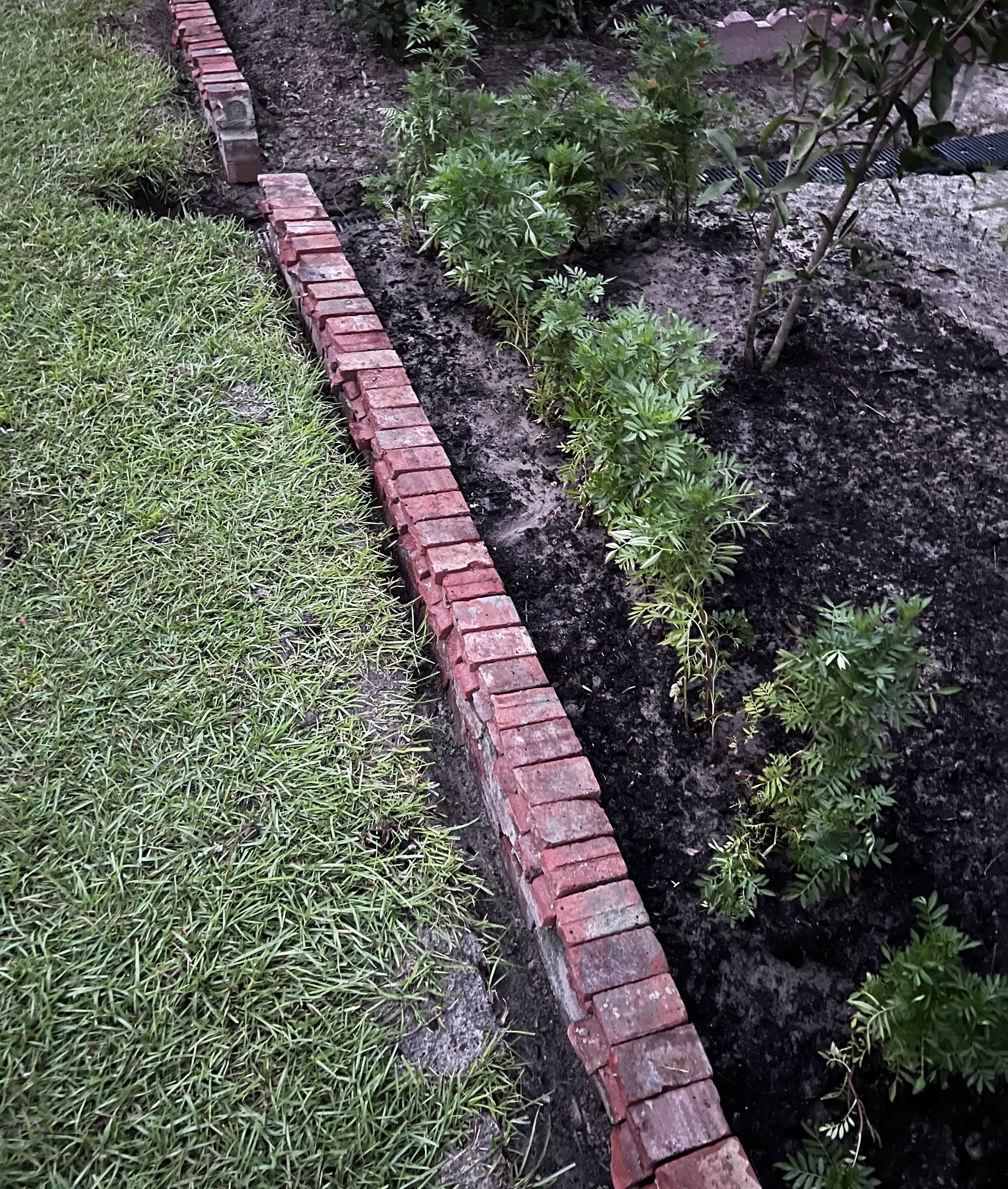 Спасибо, я только учусь!! Сегодня собрала опять овощи, отмыла от темного машинного масла пластиковую бочку и проспреила ее, тем что было под рукой- белым праймером. Закончила бордюр из обломков кирпичей, он получился довольно длинный. Кирпичи в 3 слоя, последний на цементе. Вот, пожалуй и все. Золушка я прям.