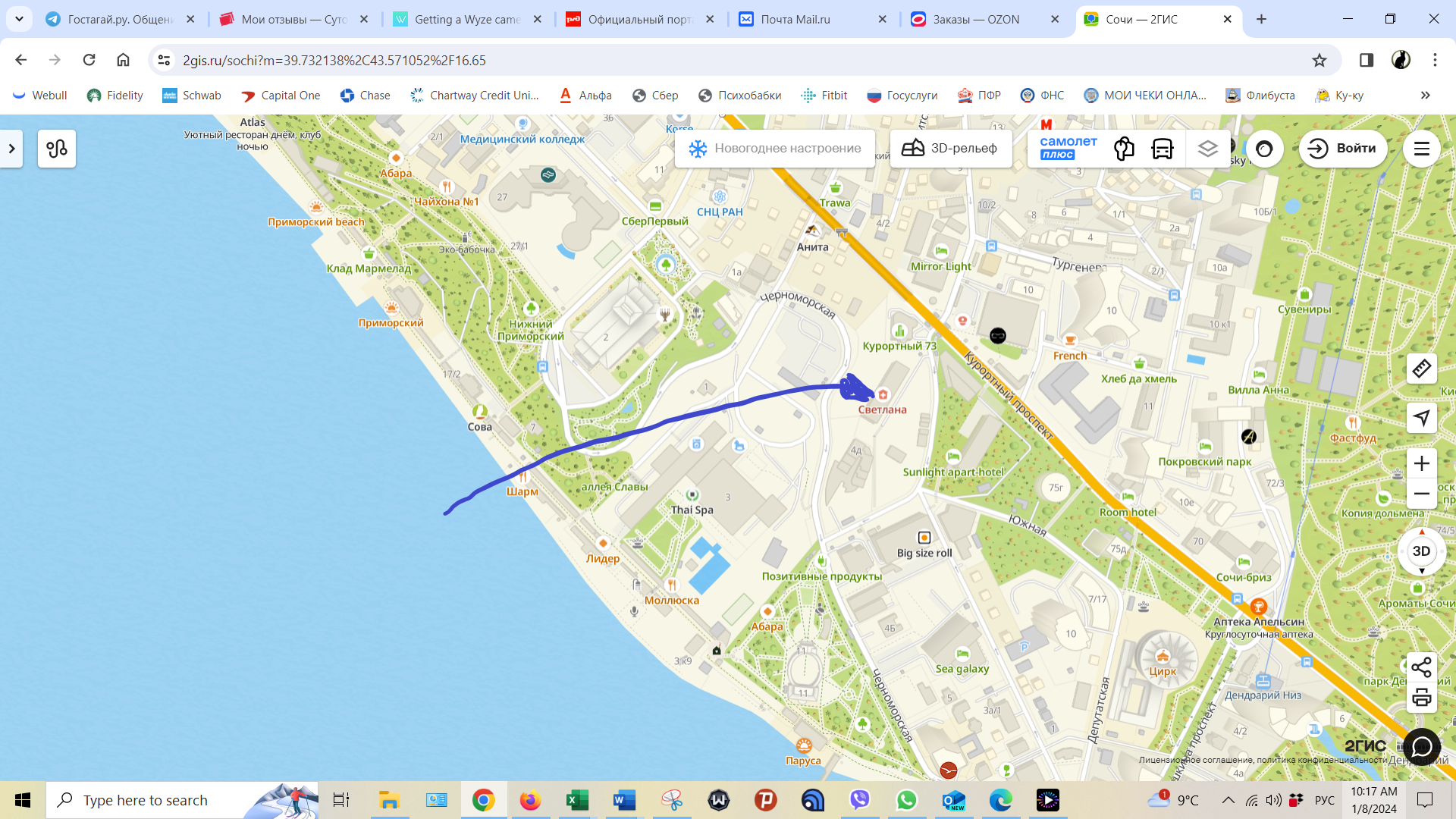 Bielita писал(а): бухгалтер писал(а): Bielita писал(а): В Сочи, это Аэропорт Адлер? Если лететь отдыхать в Сочи, гостиницу лучше выбирать близко к аэропорту? Смотрела санатории, многие 20-30 и 50 км от центра Сочи. Где Ната? Ната, если знаешь, поделись. Можно в личку. Да, аэропорт Адлер. Я бы не брала гостиницу близко к аэропорту. Вообще не брала бы гостиницу. Смысла нет. Надо просто найти адекватных хозяев. Сложно, но можно. В гостинице есть (в смысле пищу поглощать) только где-то, а я так не люблю - там вечный ротавирус у них. Я сама покупаю продукты и готовлю. В прошлый раз останавливалась в бывшем санатории Светлана (это рядом с дендрарием), это далеко от аэропорта, я тогда ехала на автобусе, потребовался час, чтоб добраться - теперь там типа студии - люди раскупили номера, когда этот санаторий дербанили, переделали их под маленькие студии (с кухонькой, санузлом) и сдают посуточно. Было хорошо - до моря 10 мин пешком и гуляй по набережной до посинения. Мое желание было бы пройти санаторное оздорорвление. Многие санатории предоставляют эти услуги, всякие разные. Да, 3 раза кормешка, меня не устраивает. У меня обычно завтрак, кофе с парой рисовых кейков и ужин. Не хочется быть привязанной к этой еде. Да, смотрела санаторий Светлана. Еще ФГБУ «Объединенный санаторий «Сочи» Управления делами Президента Российской Федерации. И Беларусь. Хотелось бы прямо близко к пляжу. И смотрела, чтоб рядом с центром Сочи. Я в местности не разбираюсь, и что лучше пока не понимаю. Собираю инфо по крупицам. Если вдруг соберусь, то это у меня будет крупный вояж, с моим обычным набором чемоданов. Как там таскаться со всем по такси 30-50км от аэропорта, пока не понятно. Так нет Светланы больше, там просто теперь как дом с однокомнатными квартирками-студиями, адрес Курортный пр. 75/2. Ну тот что рядом с цирком и дендрарием. Может еще какая Светлана есть, я не знаю. Мне там очень понравилось - все рядом, идешь утром на прогулку на 7 км так примерно и радуешься жизни. Центр Сочи - это абстрактное понятие, т.к. теперь Сочи это все вокруг на расстоянии 40 км вроде. Ну можно назвать центром то, что рядом с морвокзалом. Вот эта Светлана была рядом с ним (он выше, не вошел в скриншот), пешком минут 15 вроде - я в длинном платье туда ходила, значит рядом.