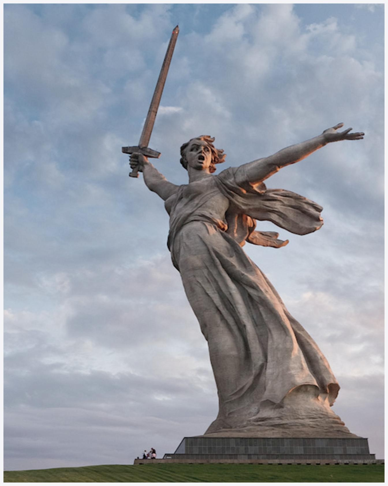 Монумент «Родина-мать зовет!» расположен в городе Волгограде и является композиционным центром памятника-ансамбля «Героям Сталинградской битвы», который расположен на Мамаевом кургане. Данная статуя считается одной из самых высоких на планете. Сегодня она занимает 11-е место в книге рекордов Гиннеса. В ночное время монумент эффективно освещается прожекторами. Данная скульптура была создана по проекту скульптора Е. В. Вучетича и инженера Н. В. Никитина. Скульптура на Мамаевом кургане представляет собой фигуру женщины, которая стоит с поднятым вверх мечом. Данный монумент — это собирательный аллегорический образ Родины, которая призывает всех объединиться, для того чтобы разбить врага.