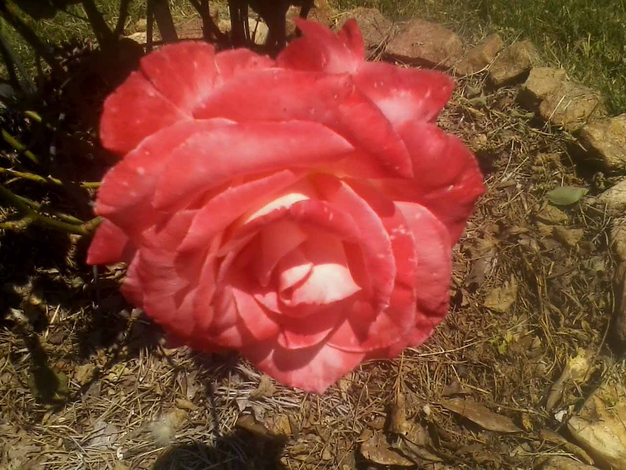 Sweet Melissa- спасибо за название этого кустика кореопсис , да он довольно густой , после дождей он у меня стал к земле пригибатся так я его подпоркой подняла, смотрю в цветке полно семян , красивые и необычные у вас розочки Учительница- розочки Хороши, я почему- то думаю мы с вами в соседних штатах живем Интересно у меня в этом году все розочки кроме одной купленной и посаженной 14 февраля нормально растут, цветут, наверно потому что хоть они мне и нравятся но больше я люблю георгины, а так всегда кому меньше внимания уделяешь .... А с георгинами то им жарко, то еще чего не хватает, ношусь с ними . Вот из розочек мне такие цвета больше нравятся :   Распустился strawberry ice , большой в диаметре 20 см .