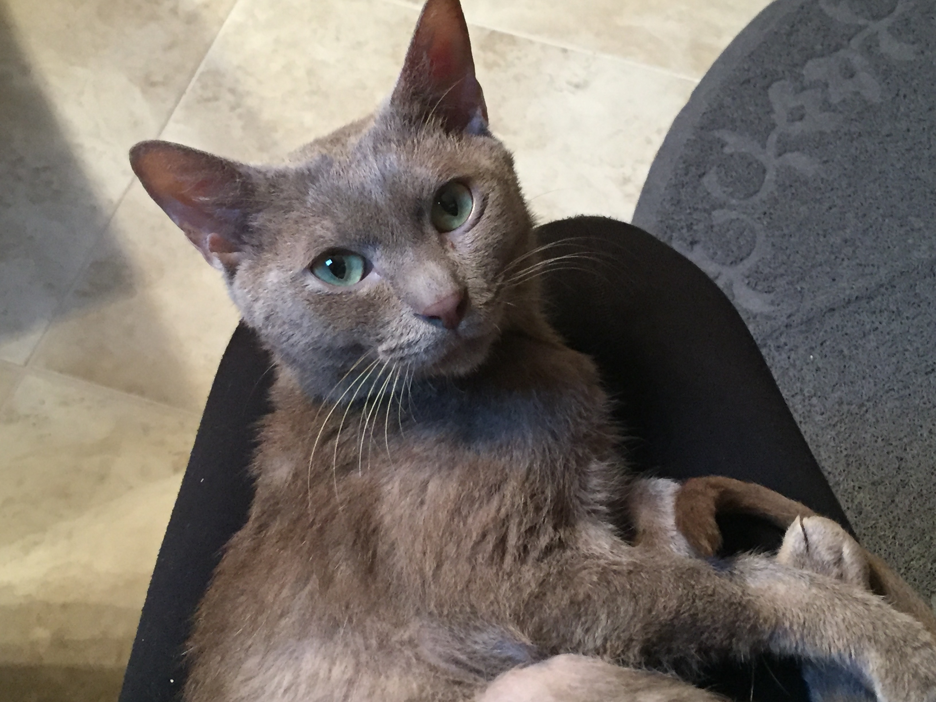 Sweet Melissa писал(а): Страшилко- худюшка, выглядит непропорционально - голова взрослого кота, а тело котенка. На еду не набрасывается совсем, перекусит и отойдёт. Его в шелтер приняли 1 ноября, по идее должен был хоть немного отъестся уже. Может таким и останется?  Его побрили потому что шерсть была вся скатанная, хоть и короткошерстный, но он выглядит не как побритый, а как выщипанный, шерсть клочками жесткая, пуха мало, в основном остевой жесткий волос торчит. Он ещё такого taupe gray цвета, на крысенка похож. Его принесли из дома с многочисленными животными, может быть из hoarding house. После праздников идём к вету за планом как отъесться и привестись в порядок  С прибавлением! Котейка-лапочка, а откормите, вообще будет красавцем. Видно же что красавец будет, взгляд такой умненький. Интересный окрас, глаза бирюзовые, точно родители русские голубые, по крайней мере один из родителей. В шелтерах они голодают, дают мин кол-во еды, лишь бы с голоду не померли.