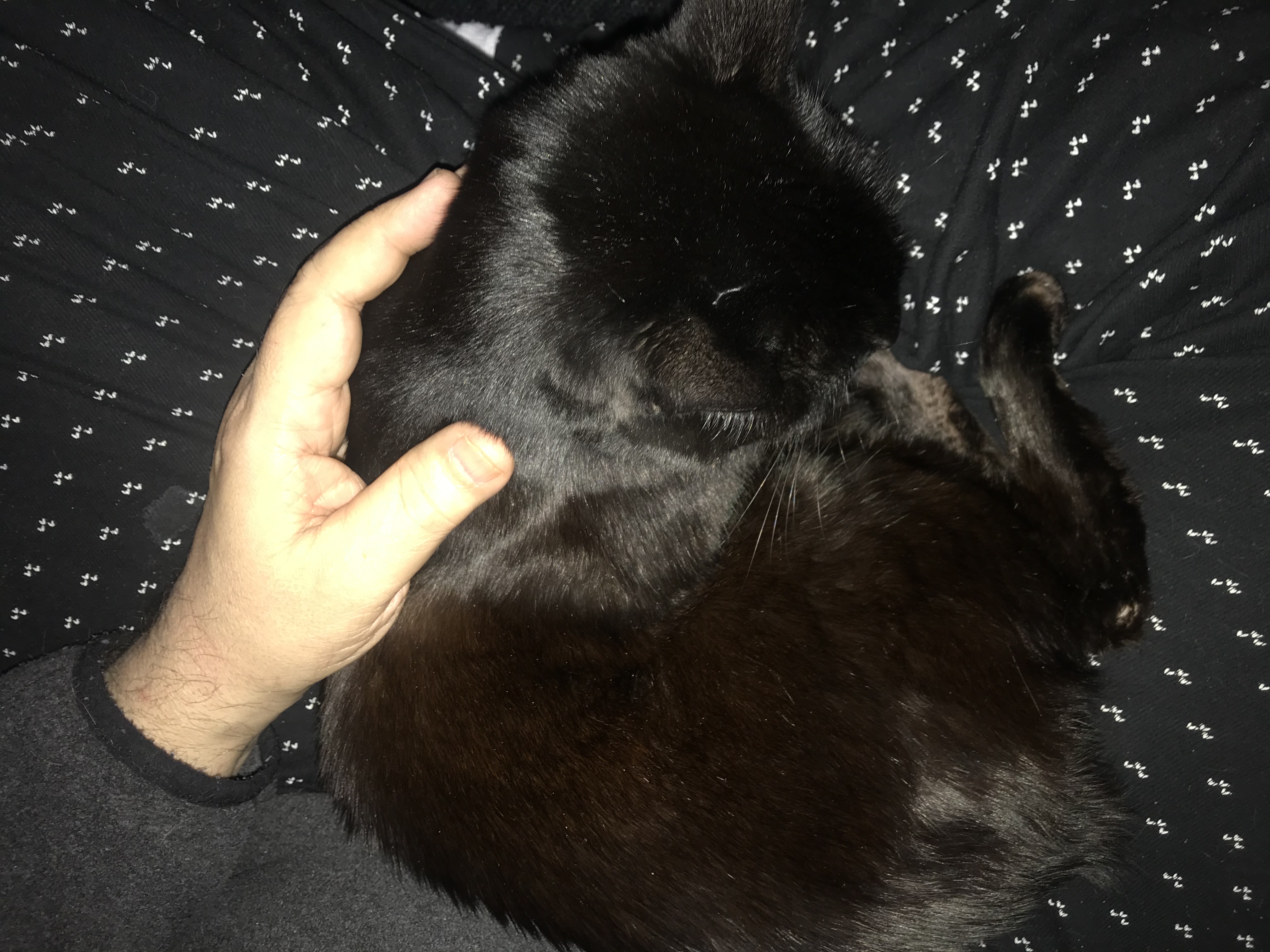 Я сейчас точно так же лежу, кошка у меня на шее  У нас так Зоя с рук не слазит, где ни сядет она тут как тут, ну руках мостится. Мамик, поздравляю с котейкой. Ласковое животное - это огромная радость. Наши двое кошек у мужа на голове буквально сидят, обожают его. Если б они были не кошками а реальными женщинами, меня б их дома выкинули б давно.