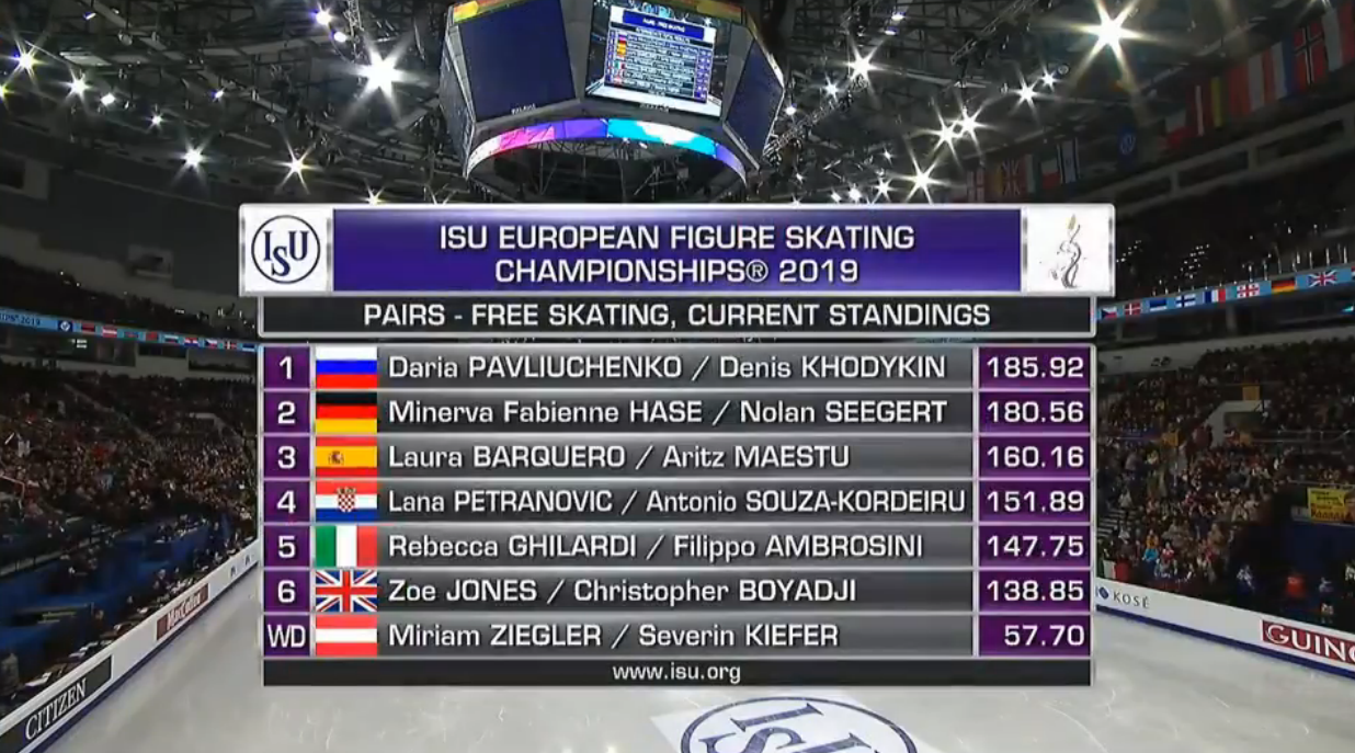 Дарья Павлюченко и Денис Ходыкин. Чемпионат Европы 2019 Произвольная программа