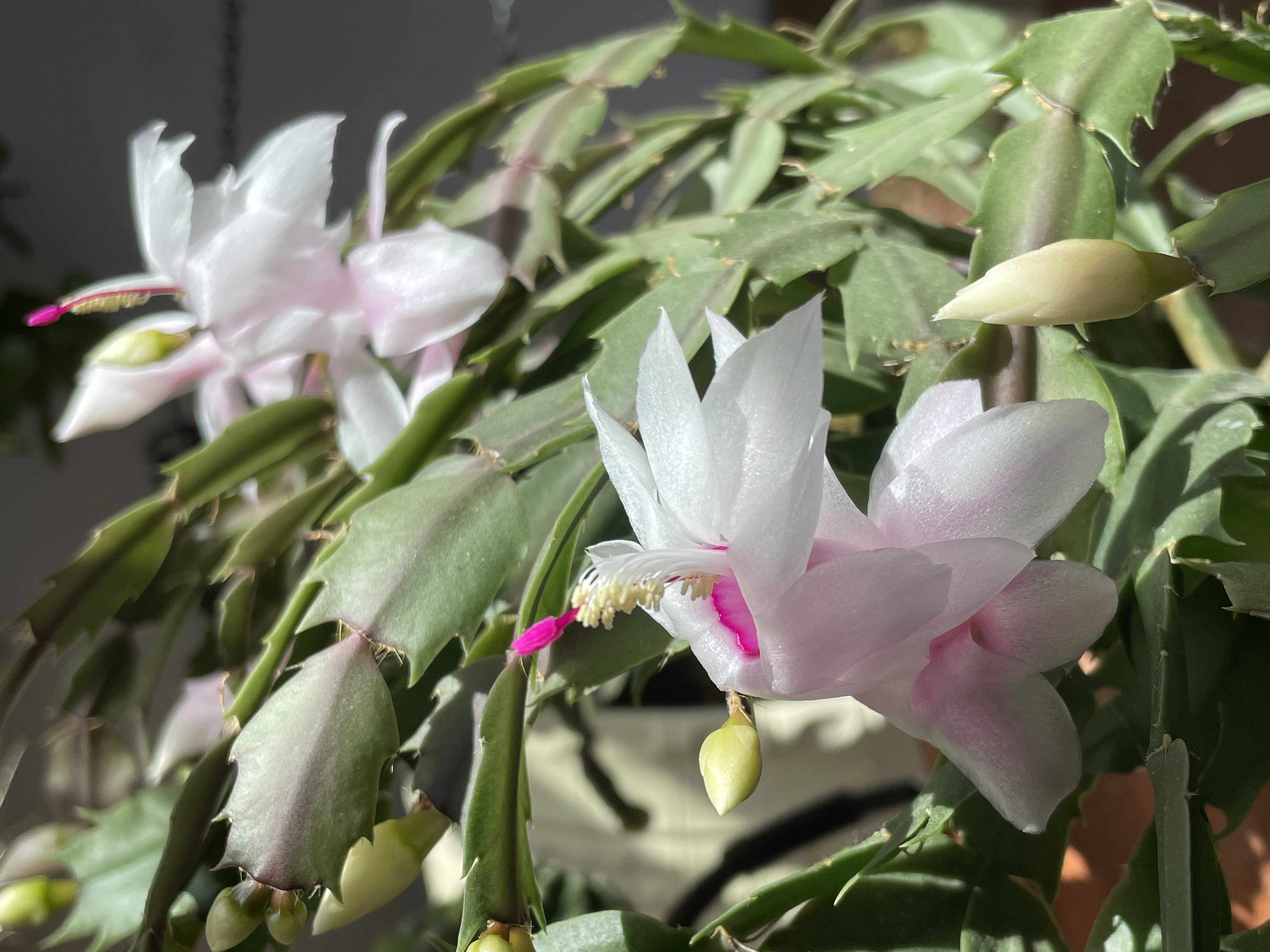 Baylee писал(а): OklaXoma писал(а): Вот и жемчужный распускается И красный, который упал и обломался недавно. Лепота! На окошках видно что-то уникальное... признавайся что Про жемчужный согласна  дык того...занавесочки?  от свекрови остались, думаю, что довольно древние, мне кажется, вид немного сельский, но ничего другого не могу сообразить туда...жалюзи придется открывать-закрывать постоянно, не удобно...вот занавесочки только и работают. Полочку из теплицы пришлось притащить сюда для декабристов (в теплице муж вот ее и обрушил, но цветы не в кашу, выдержали  ), на подоконниках не убираются. Хотелось бы три туда поставить - но внизу уже окна нет, не стала рисковать. Однако полочка подходящая...и свет худо-бедно с двух сторон им достается. каждый день на глазах, пока цветут - полюбуюсь  потом опять в теплицу. а вообще надо продумать какую-то многоэтажную полку в этот угол для цветущих, прям в самый угол ее приспособить до потолка и знай - ставь очередную усладу для глаз  .