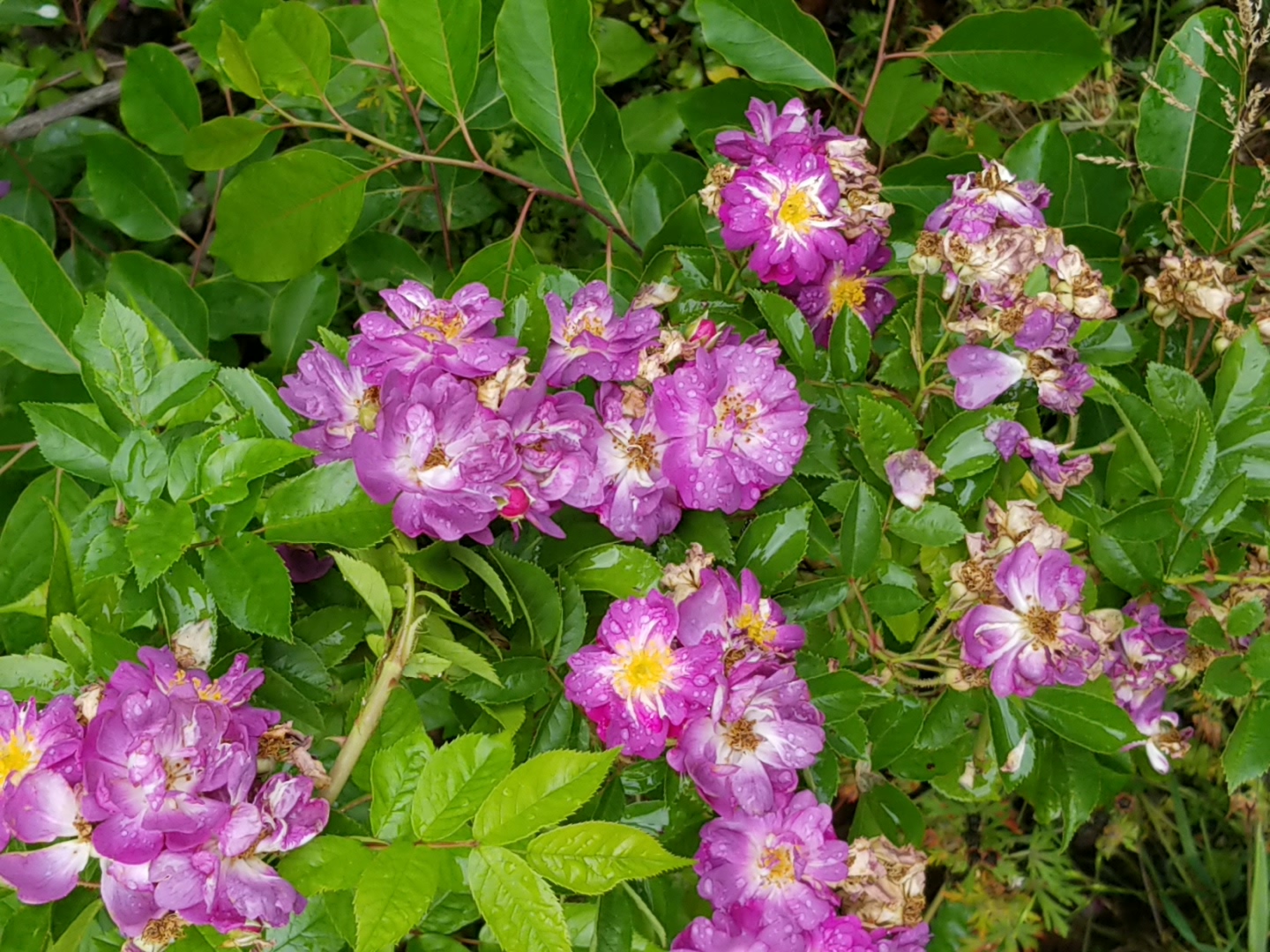 А ко мне тут какую-то дикую розочку ветром надуло. Растёт себе в заброшенном углу, я там давно место для отходов для огорода соорудила. Вернусь с Атланты, надо будет расчистить место для розочки, она пахнет как наш родной шиповник. В первый раз зацвела, сюрпризом. Она больше фиолетовая, фото с телефона цвет исказил, она не розовая совсем.