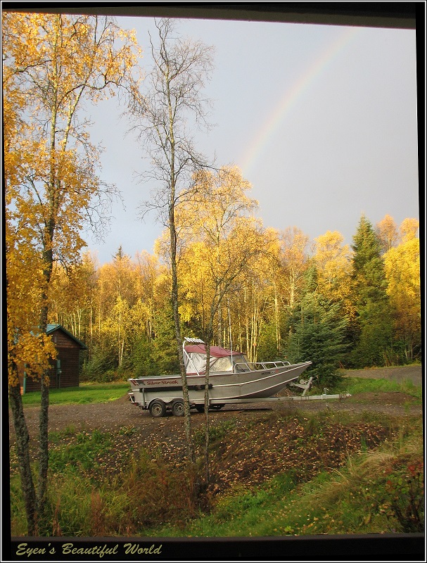 Аляска. 2008. Снято мыльницей через двойное оконное стекло , поэтому качество плохое. Но краски, свет, радуга, тишина после дождя... Жалко не было хорошей камеры.
