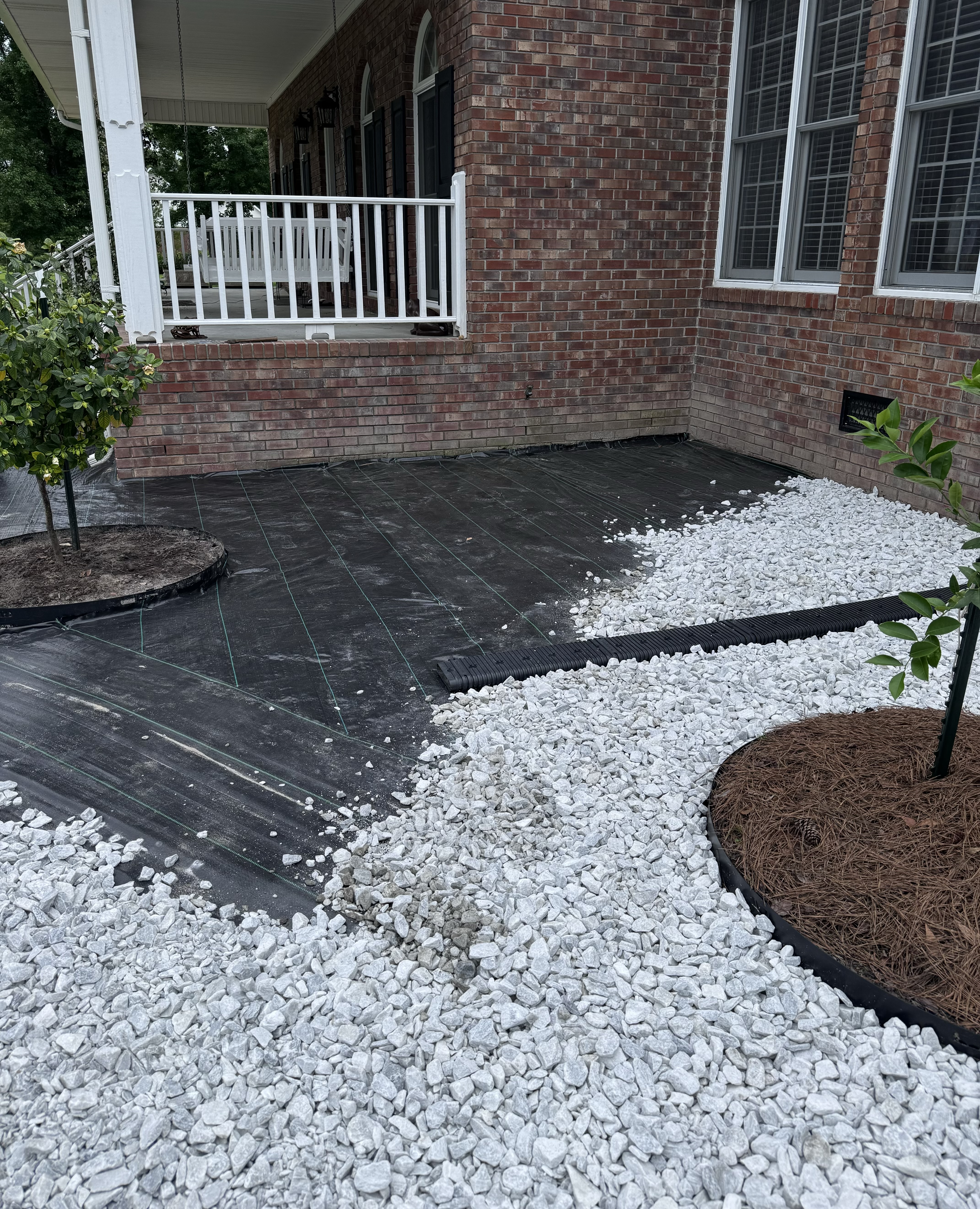 Прежде чем постелить weed barrier, нужно песка огромное количество. Мы покупали сначала, а потом я нашла поваленное дерево. Уже штук 10 тележек вывезла. Настоящий песок!