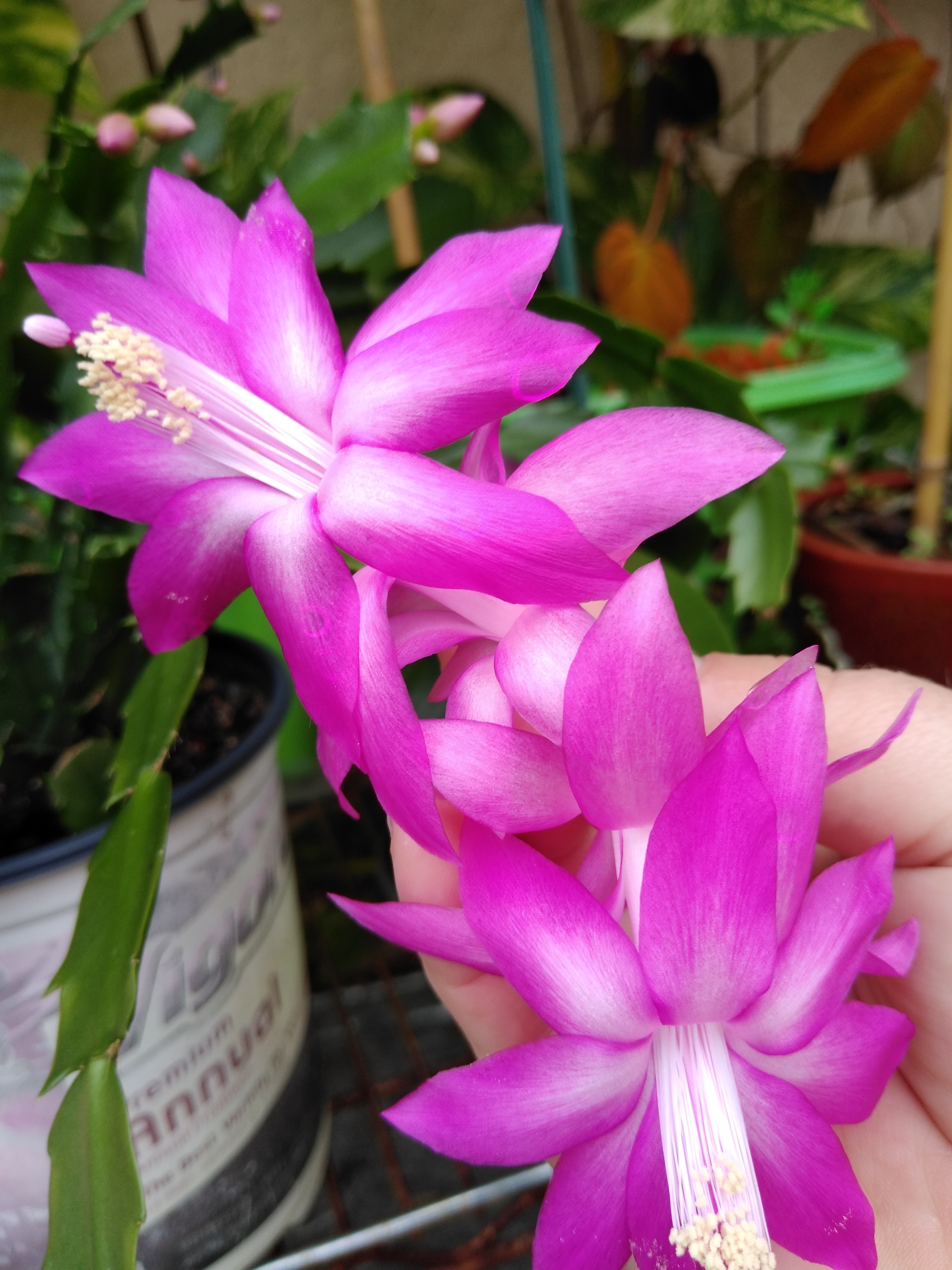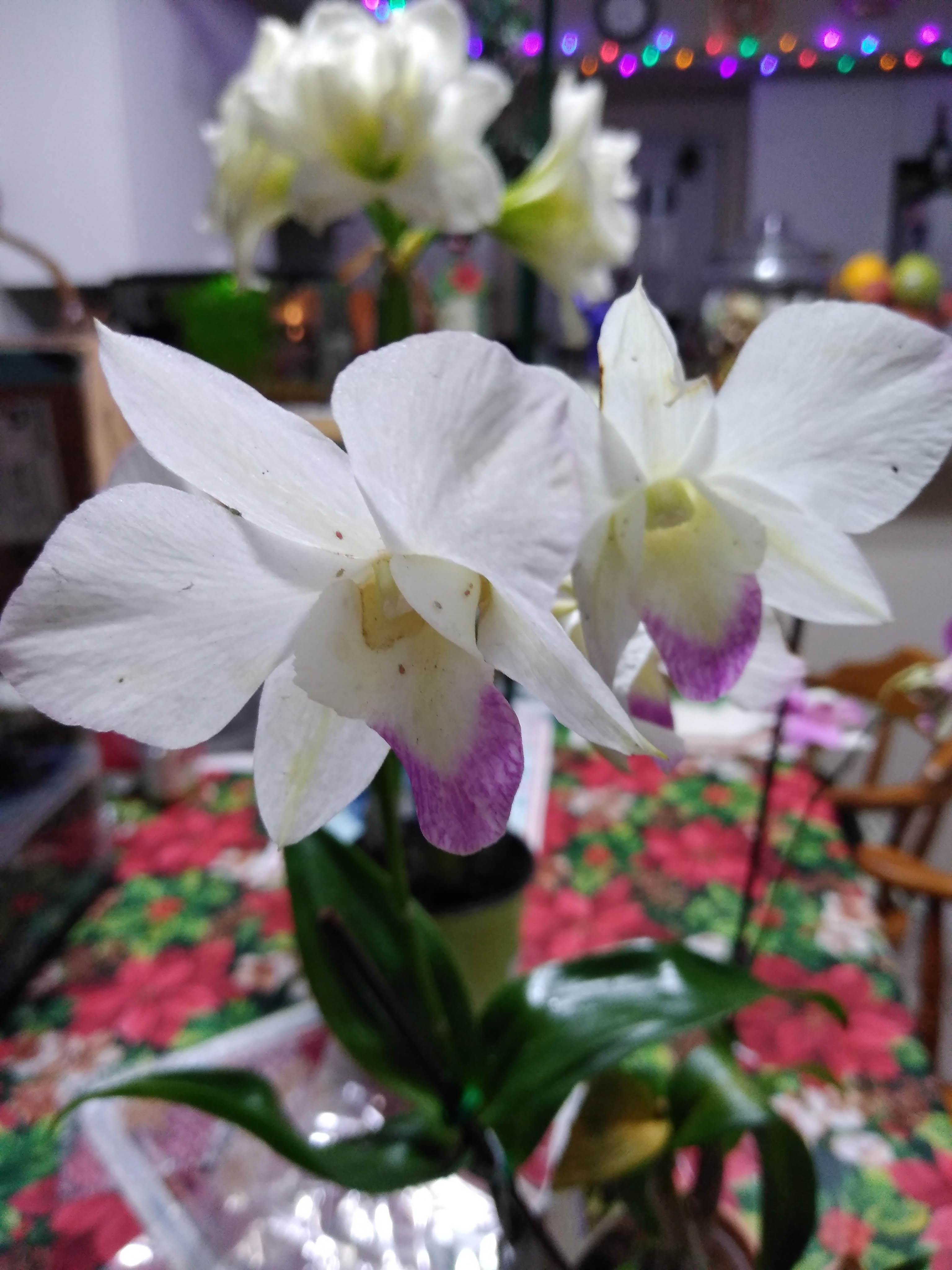 У меня белый почти отцвел. Что то рано в этом году. Обычно к новому году цветут. Я его не обрывала и вообше никогда их не обрывала. Даже не знала об этом пока недавно не увидела этого на ютубе. Вот первыя фото в этом году, вторая в год назад когда я его купила.