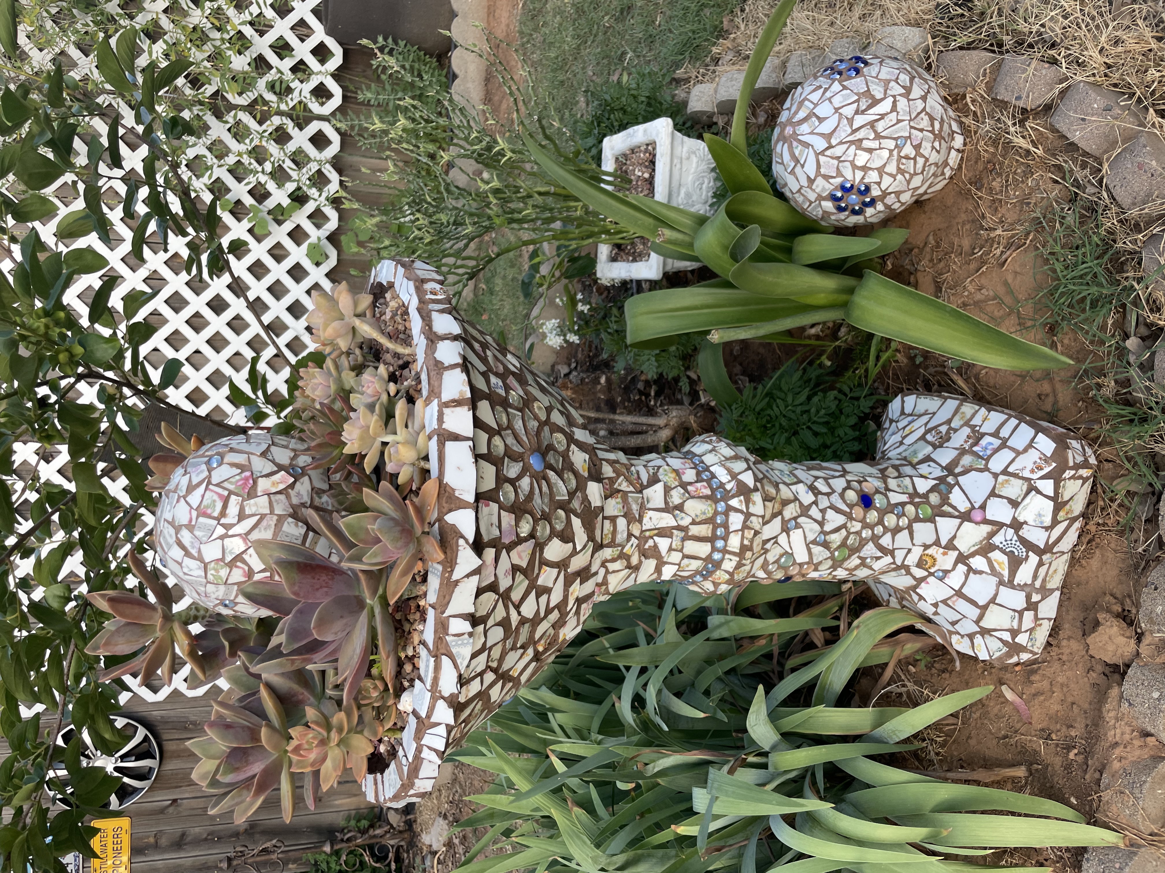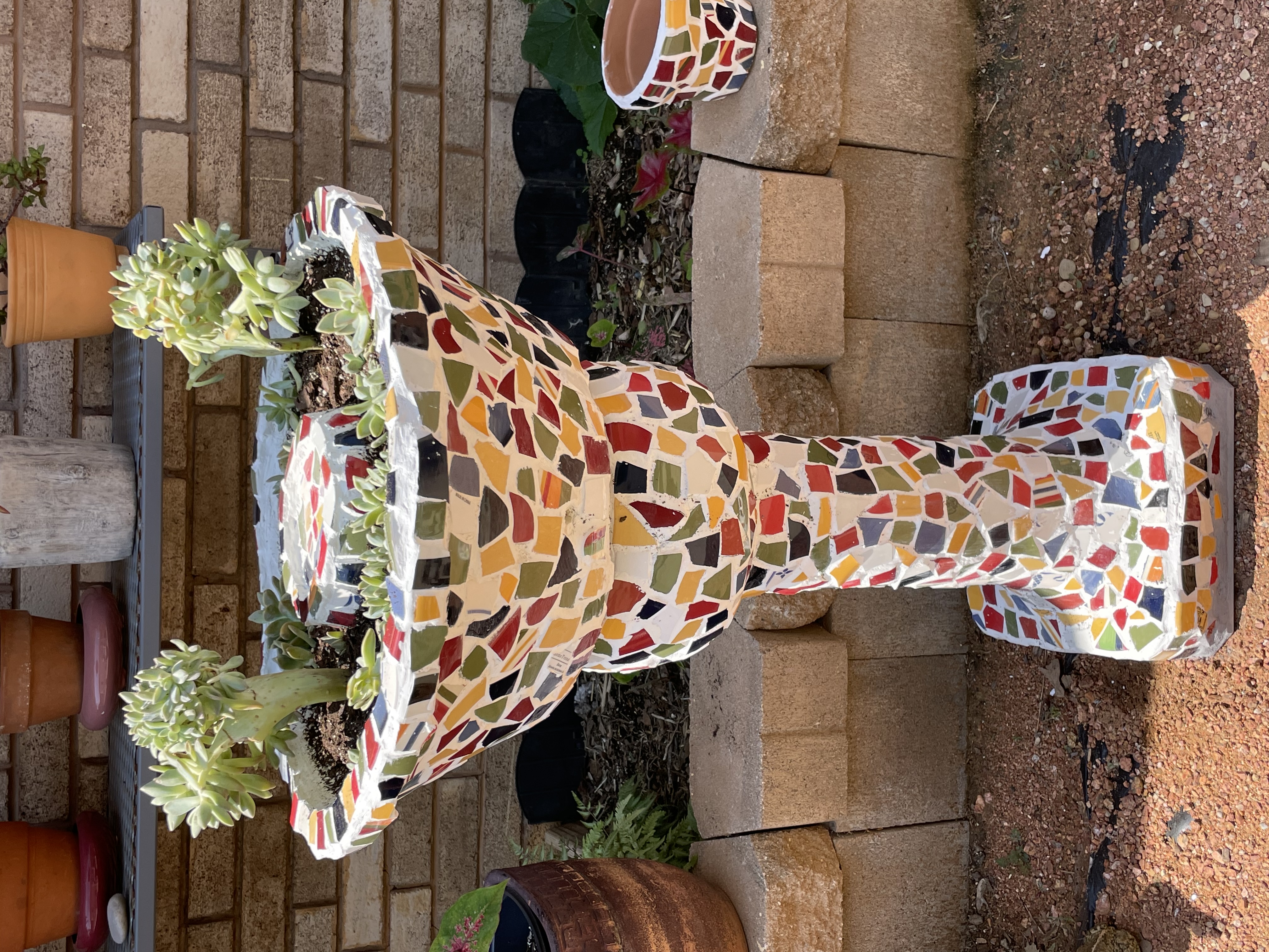 monaliza писал(а): Оклахома, такие же у меня лилии, цветут недолго, потом стоят палки, пока я их не обрежу. Но красивые, особенно на солнце. А уж кактустки загляденье. Помню один расцветёт и событие жизни! А у тебя прямо мечта замерзшего сибиряка. так тут с кактусами гораздо проще, чем было во времена холодного нашего детства Для цветения им нужны низкие зимовочные температуры. Как там в России было такое организовать в квартире с центральным отоплением? почти никак, ну или очень сложно. а сейчас проблемы с этим нет - вот они и цветут  Стараюсь не сгребать все, что вижу  , только что прям нельзя не купить. Долепила второй вазон для суккулентов - все из тех же Г* и палок (пластиковых бутылок и битых тарелок). Наверное, мне первый все же больше нравится...но хотелось разноцветный забабахать. теперь не знаю пока, куда его приткнуть  был бы как первый - было бы легче пару ставить. Покажу оба (первых хоть показывала уже, но для сравнения чтоб рядом были) - народ, как ваши опиньоны, в каком ключе приятнее глазу?