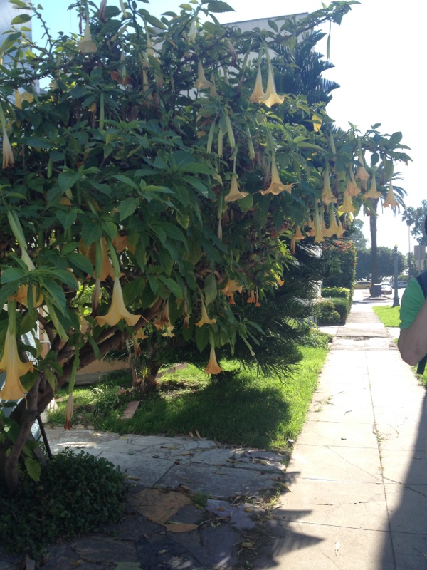 Последние, как колокольцы -Angel Trampet.У меня такие же только розовые.Они легко размножаются. Нравали веточек-в воду, они кoрни дадут.Растут быстро.