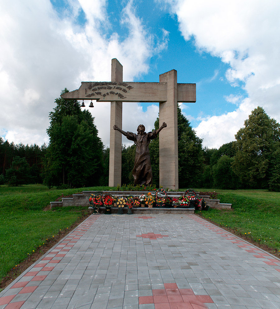 Монумент представляет собой бронзовую фигуру женщины высотой выше 4,5 метра. Она стоит, подняв в проклятии руки, в проеме ворот, которые, в свою очередь, достигают в высоту 11,5 метров. К горизонтальной перекладине ворот прикреплены 3 колокола, два из них издают звон, а третий расколот, что символизирует, что во время войны в Докшицком регионе погиб каждый третий житель.