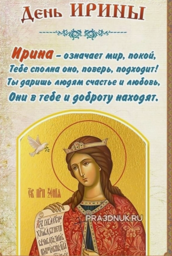 Всех Ирин с именинами! Святые с именем Ирина в 2024 году почитаются 14 раз.: 12 января, 16 января, 26 февраля, 7 марта, 29 апреля, 18 мая, 26 мая, 10 августа, 17 августа, 22 августа, 30 сентября, 1 октября, 2 ноября.
