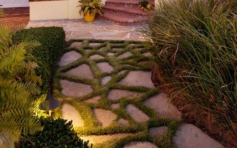 Я еще подумала сделать такие как островки и поставить туда огромные вазы. Попробуй граунд ковер - типа как фикус. Он очень инвейзив. Если небольшая площадь, то как раз между твоим флегстоуном будет расти и давайть растик лук. А в вазах что? Поливать не надо? Ты в Кали ж живешь, но не там где пустыня?
