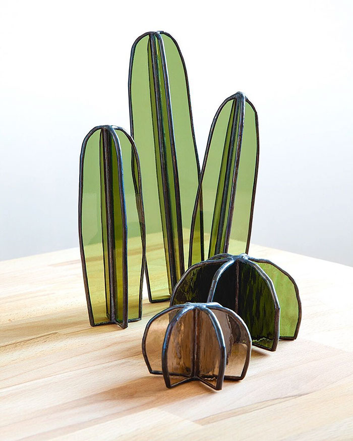 Цитата: Lesley Green is a Brooklyn-based artist who pushes the limits of stained glass and glass tile art. Her projects are heavily influenced by nature and architecture, so this cactus series is one of the best examples of her magnificent work. http://www.boredpanda.com/stained-glass ... ley-green/