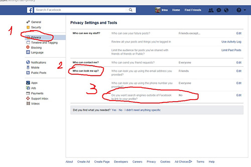 Нашла только privacy, в самом низу. А дальше затык. Помогите технически особо развитым, а?  open fb on your computer . then: