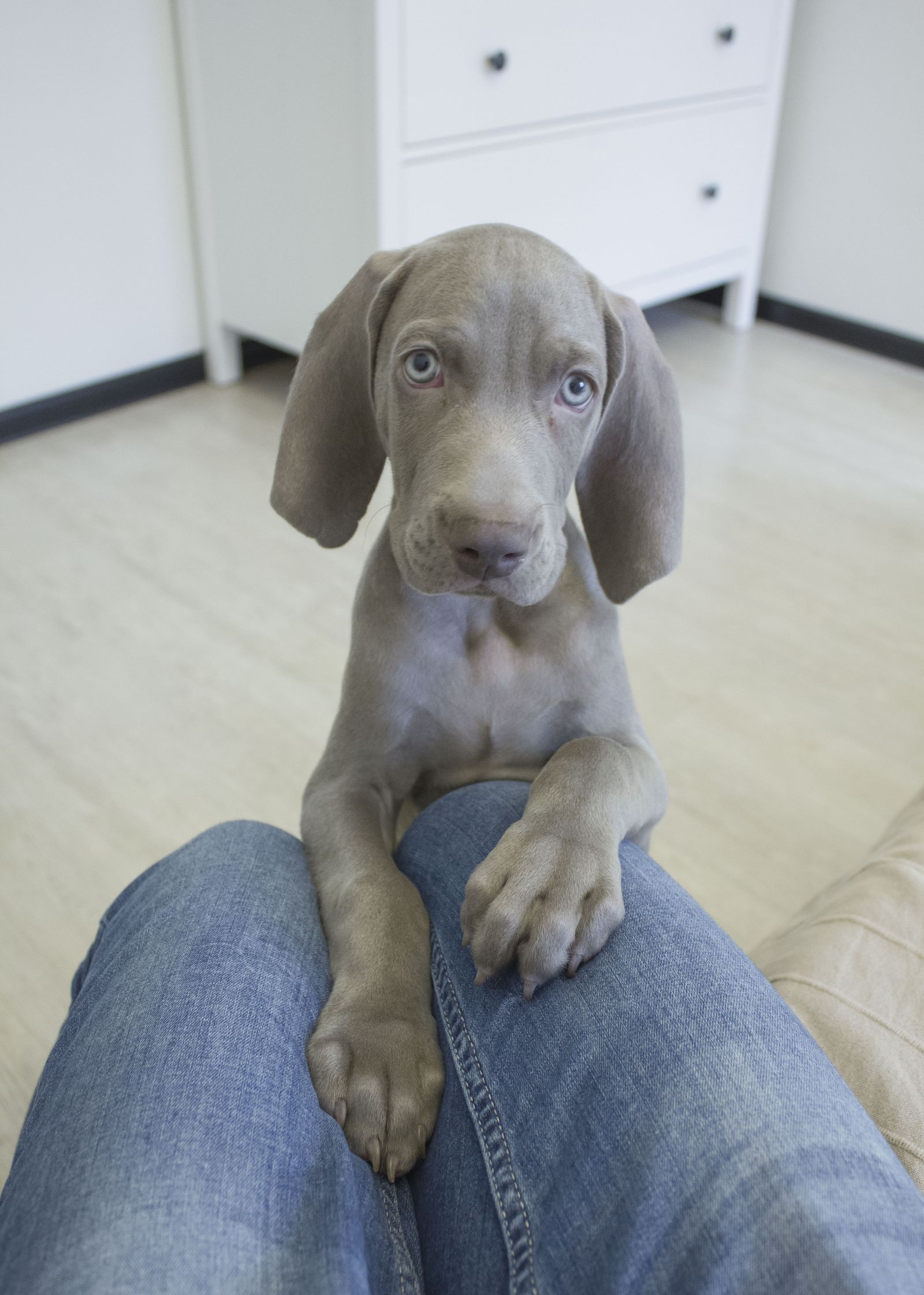 Ваймаранер порода называется..я фотку сперла с инета,соседская большая и с голубыми глазами..Красотка..