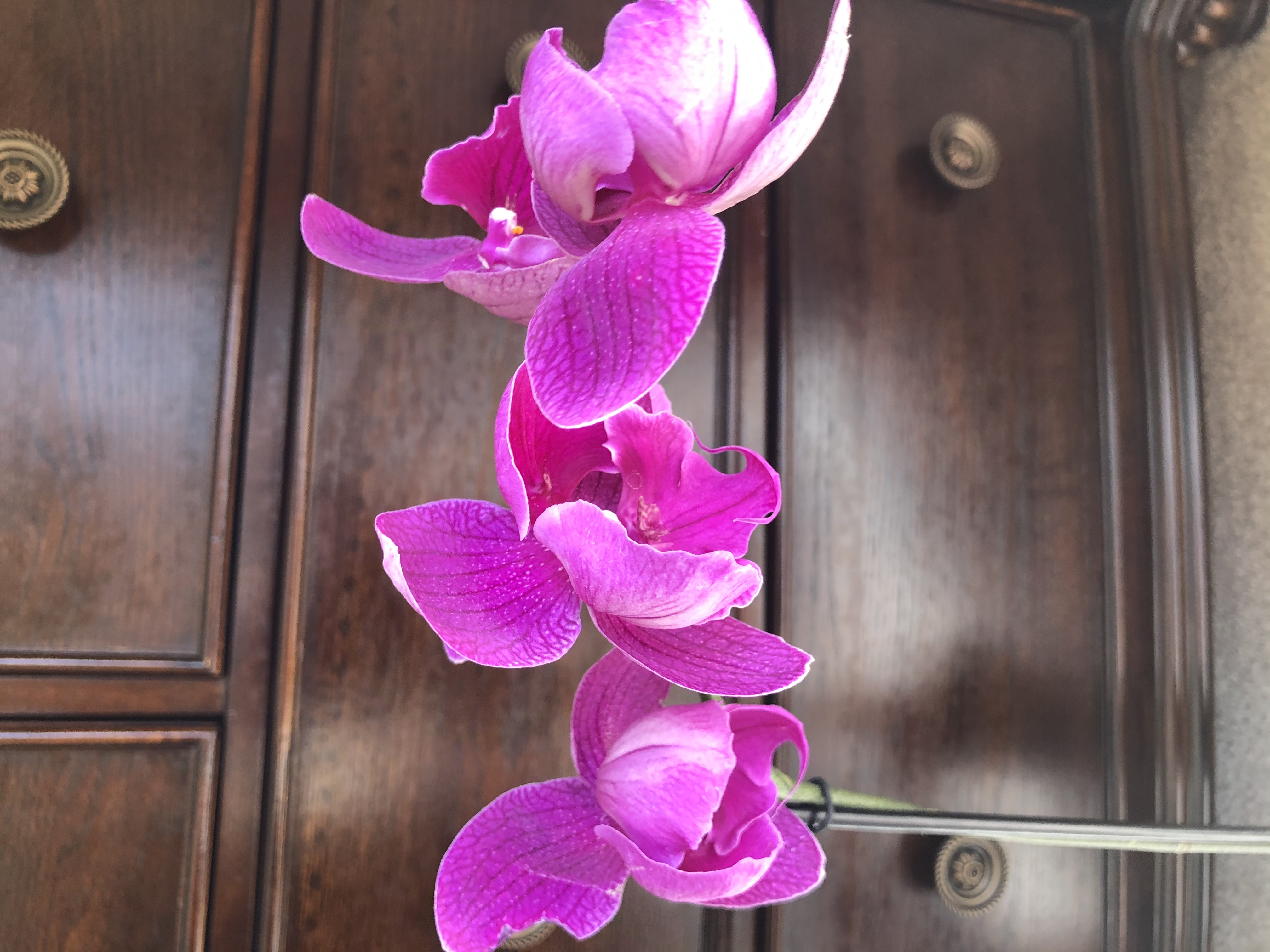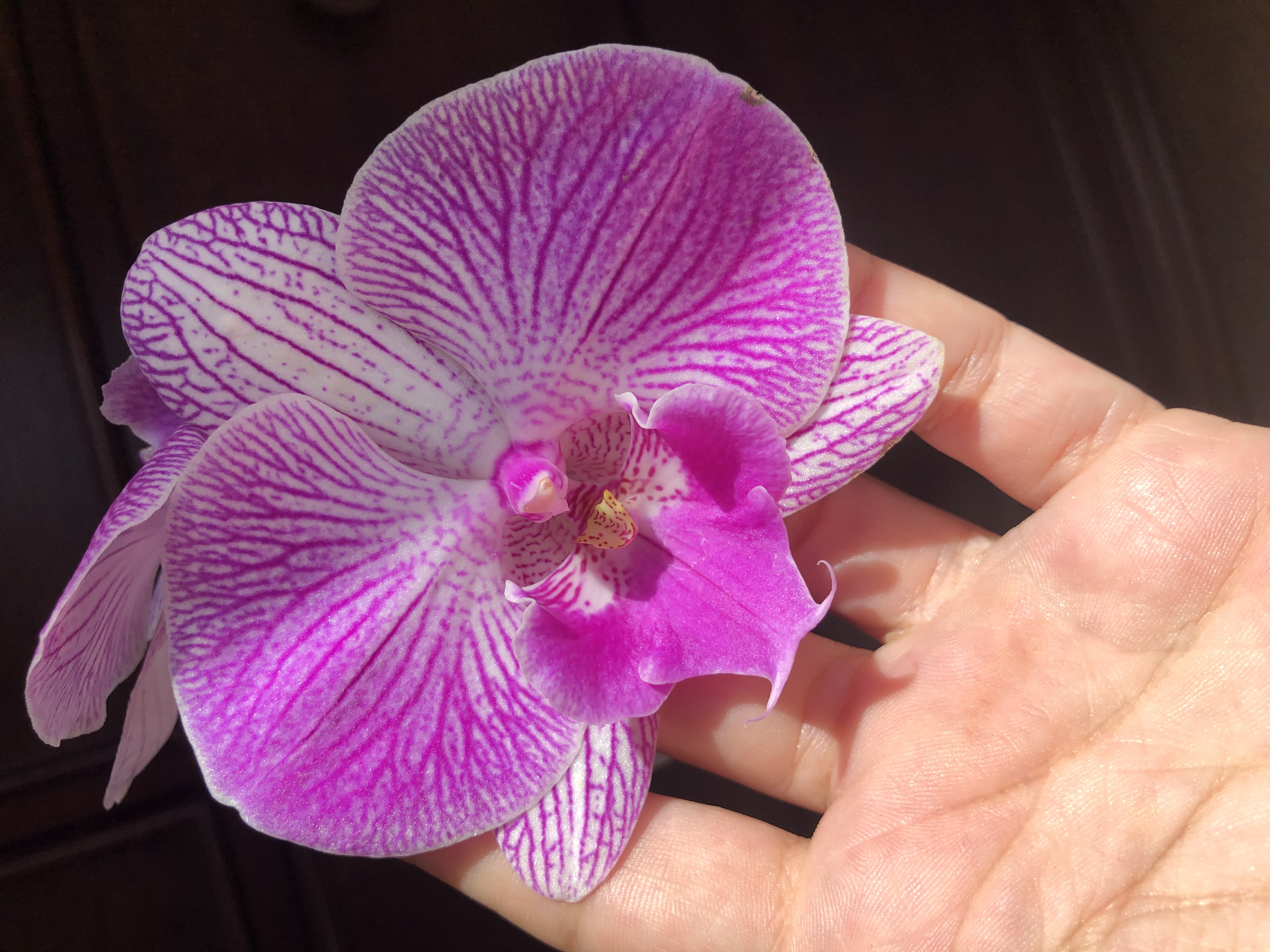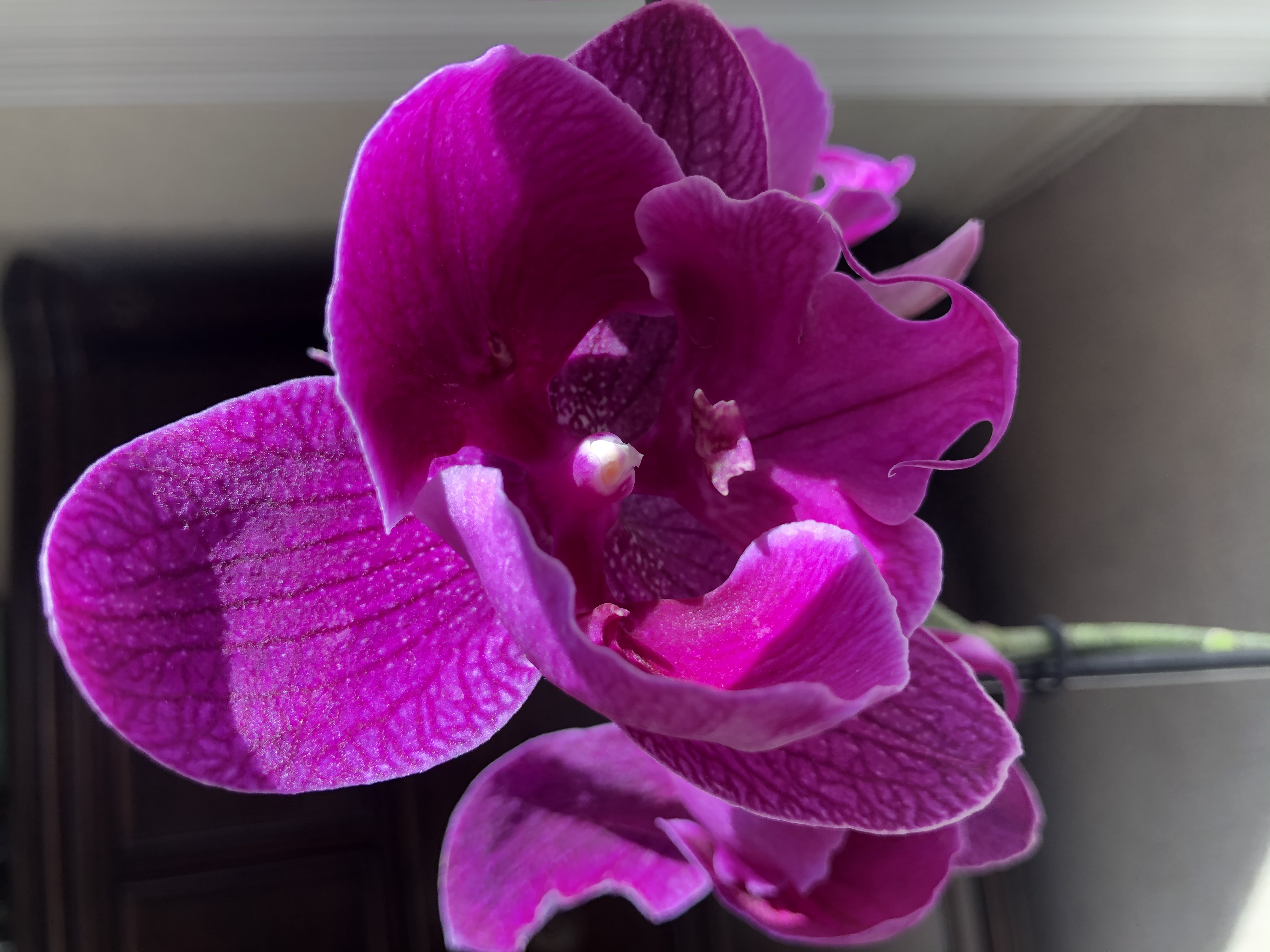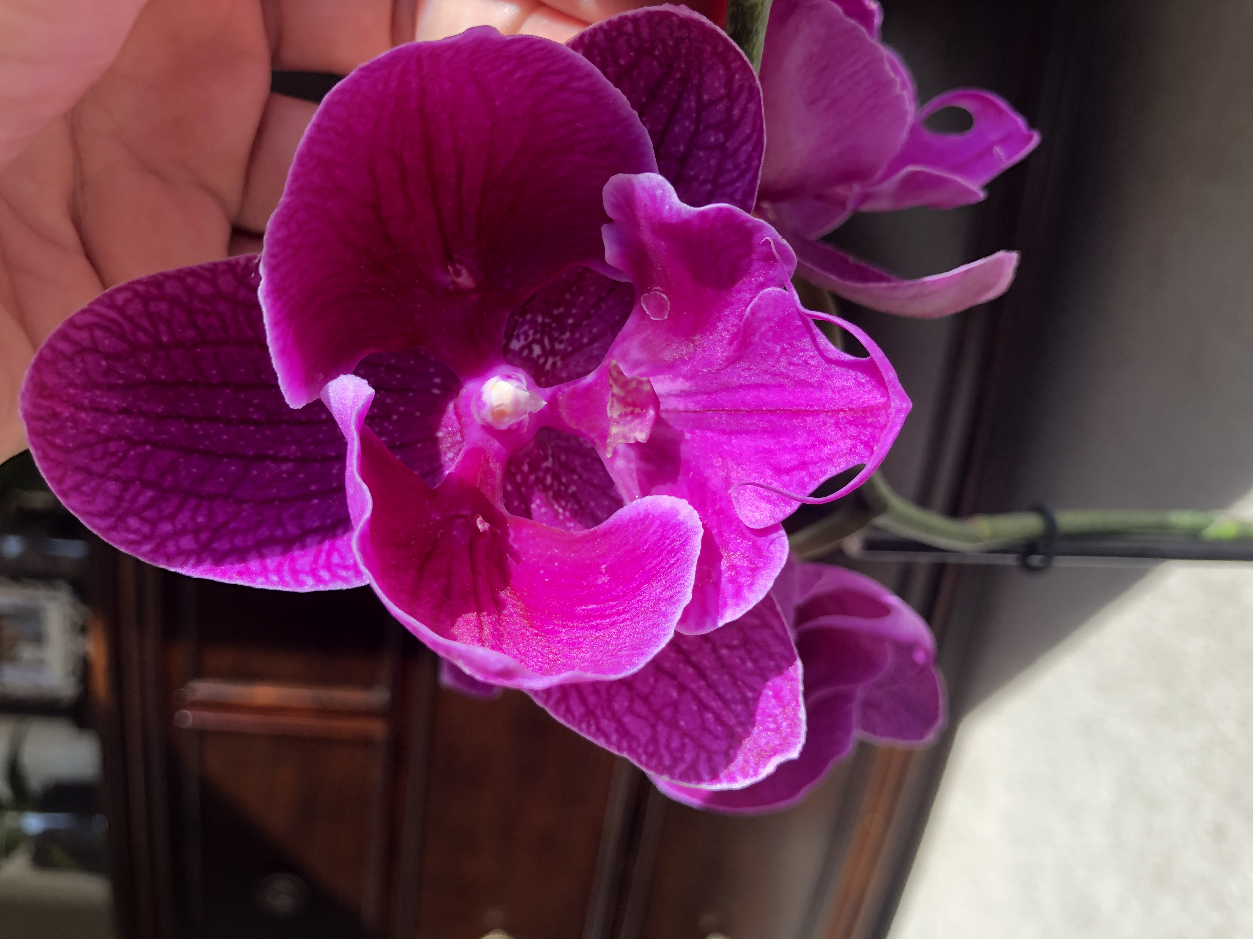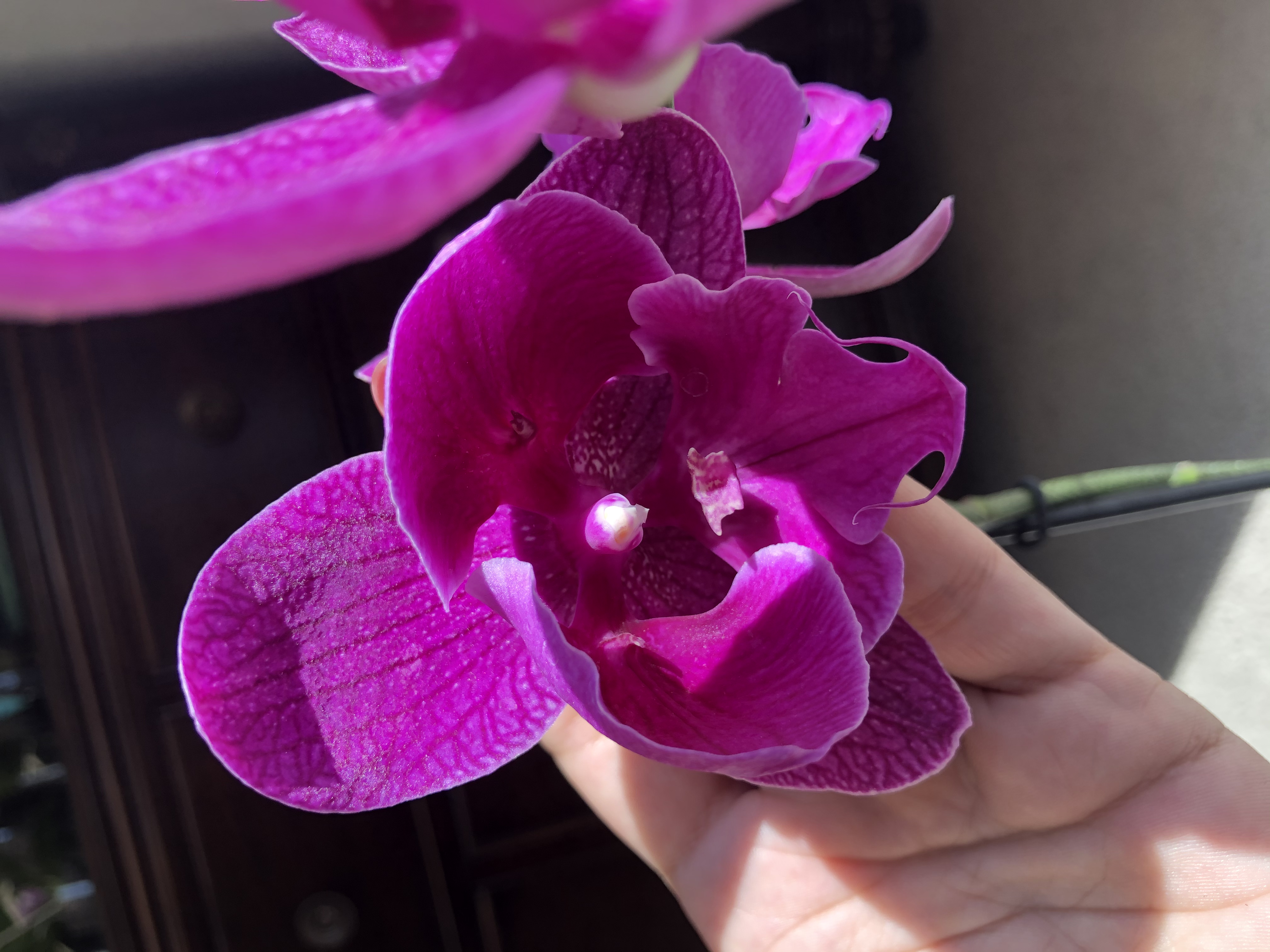У меня похожая есть, в офисе держу. Крупные цветы, цветёт не переставая, уже около года, ещё предыдущие цветы не сбросила, а уже две мощных стрелки растит.