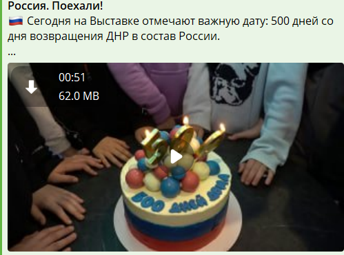 Ура!!! Не могла выставка «Россия» остаться в стороне и не обратить внимания посетителей на важную памятную дату — 500 дней со дня возвращения Донбасса в состав России. (https://t.me/gowithRussia/4992)