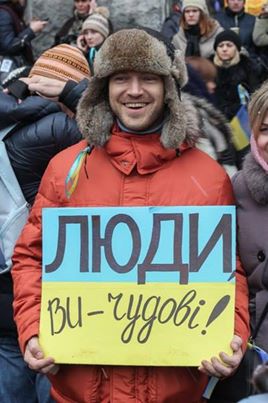 Цитата: "...итак, ребята, прошелся я по Майдану и КМДА. Есть ряд вопросов: 1. Почему в бесплатной полевой столовой в КМДА сервис лучше, чем в киевских ресторанах? Где привычное хамство? 2. Почему люди играют в футбол на Майдане лучше, чем в Динамо Киев? 3. Зачем пять человек за час на Майдане предлагали мне еду/чай/кофе? 4. Куда делись политические флаги, откуда так много флагов Украины? 5. Почему журналистов не бьют? Они ходят где хотят и снимают, что хотят. Полный беспредел. 6. Отчего все улыбаются? Откуда эти все "извините" и "перепрошую". Хамство-то где? Где угрюмые гримасы? 7. Самое главное - почему чай, а не водка? И вообще, где все алкаши? Автор: Тарас Вайда очень понравилось содержание вопросов, у самого такие возникли + от себя добавлю: 8. Почему после фразы - Я с Луганска, люди чуть ли не на колени перед тобой становятся и говорят большое спасибо, что Вы приехали ? 9. почему на фразу Сколько стоит - люди смеются, и говорят Вы наверное первый день, рады Вас тут видеть, возьмите бутерброд с чаем! 10. почему улыбка людей не сходит с лиц, нету грозных взглядов, толканий в толпе? Не смотрите TV, не читайте газеты, просто едьте и посмотрите своими глазами! Кстати на майдане чисто! не ведитесь на провакоционные фото! Люди сами убирают, и даже выкидывают исключительно в урны! Всем, кто не был на Майдане. Сходите. Не ради политиков, не ради ассоциации с ЕС и даже не ради страны. Ради себя. Я весьма аполитичен, но тот случай, когда простые people are awesome". Настолько дружного сплочения людей нивидел На фото написано "Люди - вы прекрасны".
