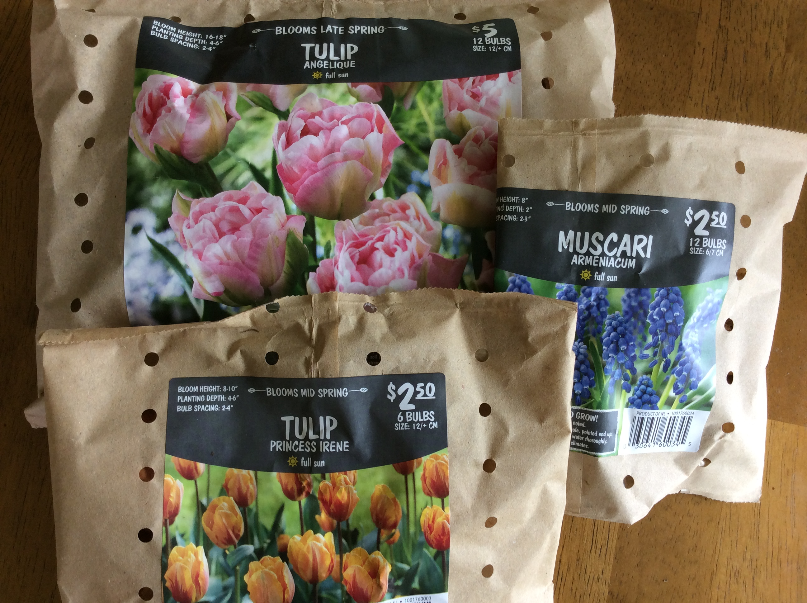Волмарт в этом году удивил отличным качеством луковичных. Не то что в других магазах. Все такие крупненькие и сухие. Очень хорошие. Посмотрим что весной вылезет. Тюльпаны из Волмарта Даффодилы купила в Ботаническом саду.
