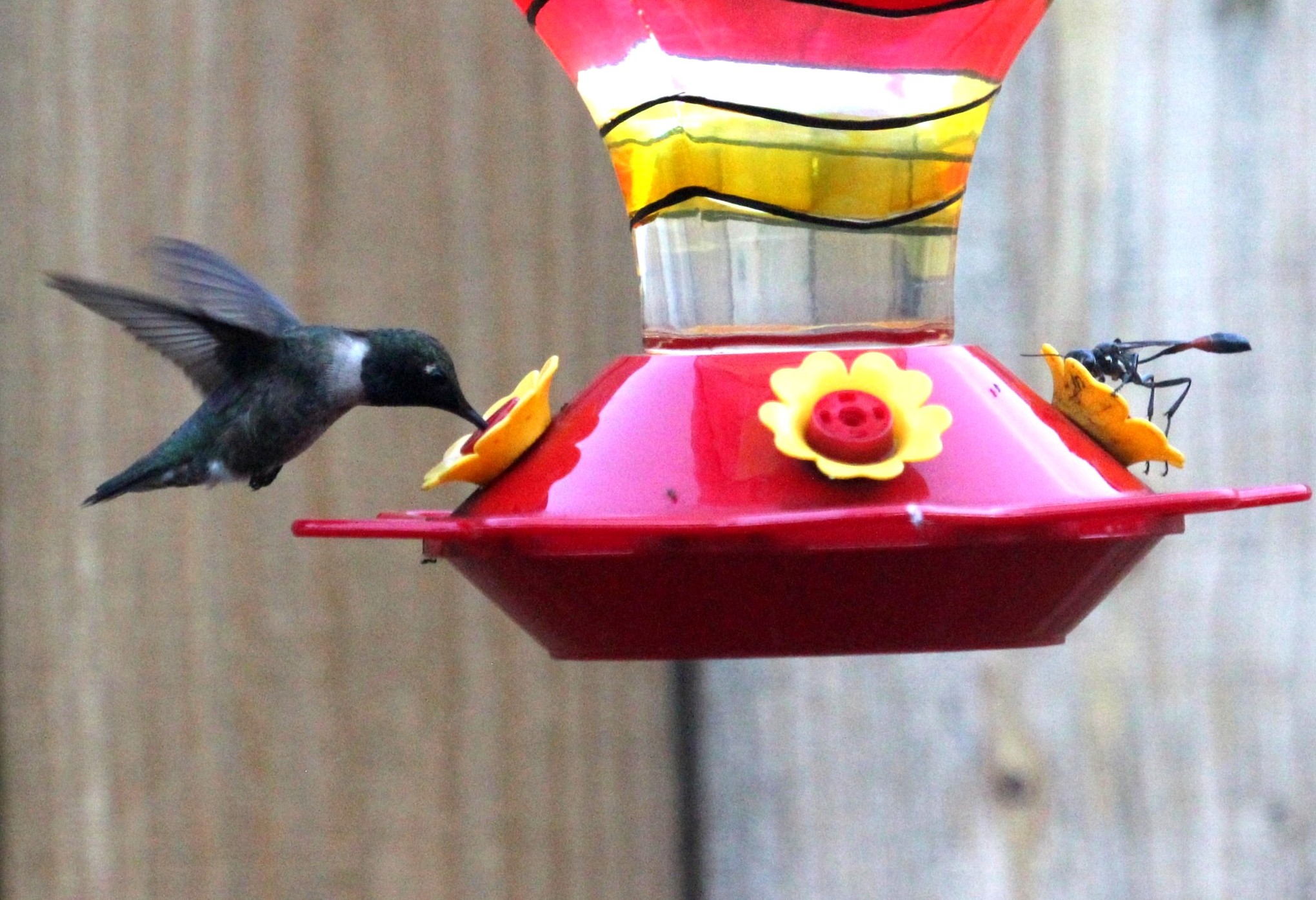 Бейля, кормушки повесь! гораздо урожайнее будет. У меня сейчас только петуньи цветут. Колибри на них не особо смотрят. Все по кормушкам  Правда, самая урожайная висит в тени, одни силуэтики получаются  на первой фото колибри и наездник на одной кормушке, не мешают друг другу. На второй - под дождем в сумерках.