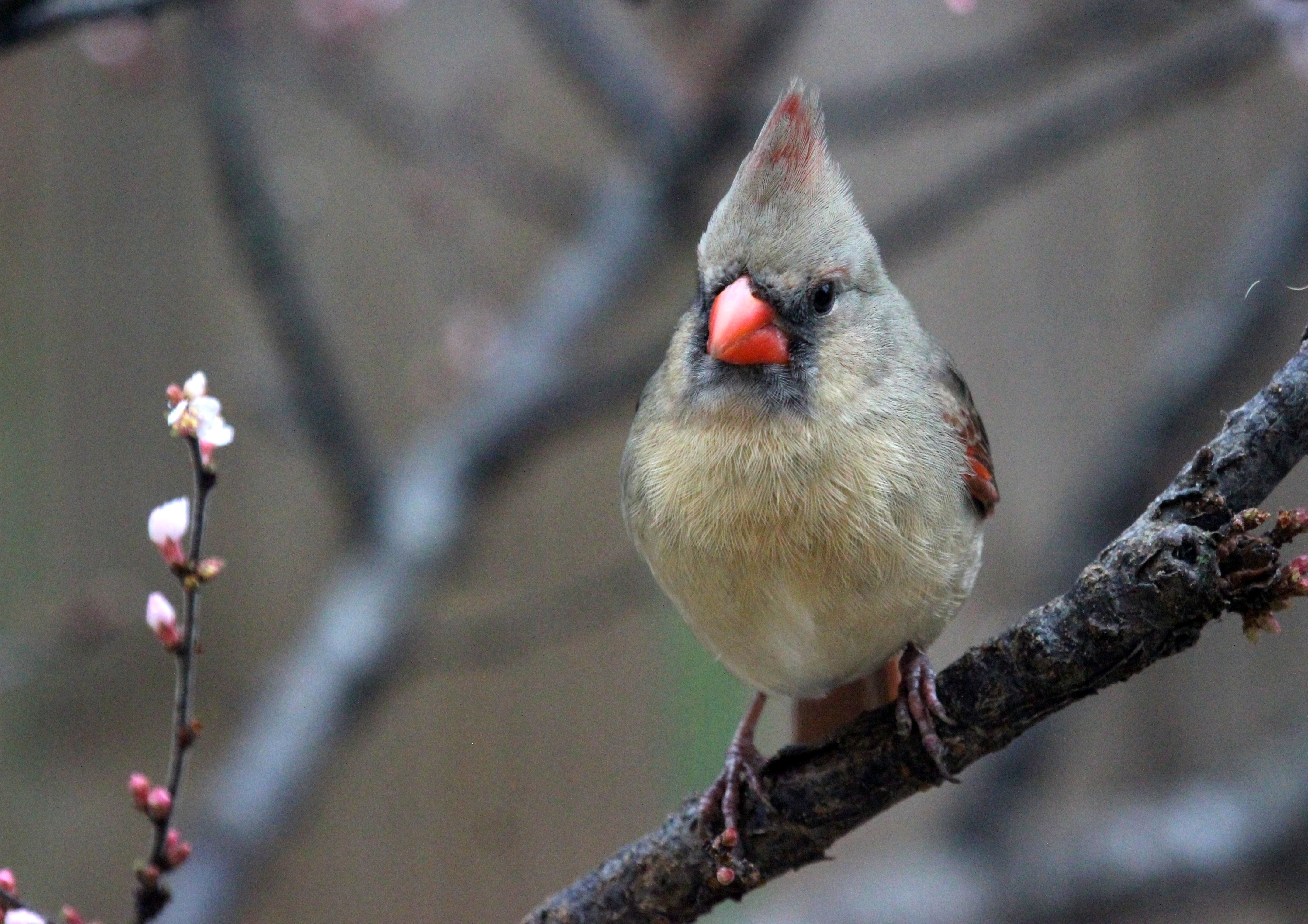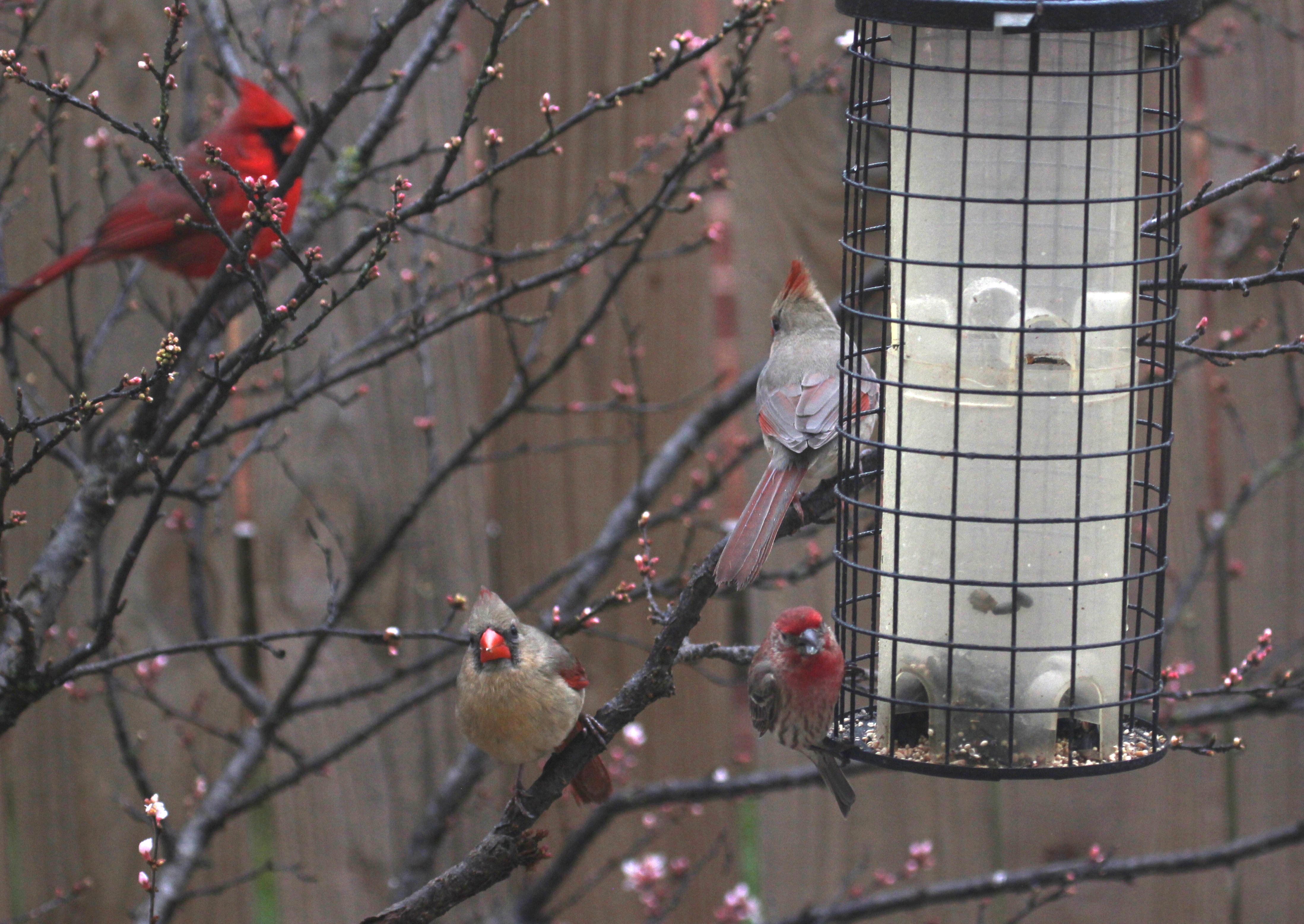 кардиналы да, чудесные птички, просто стаями пасутся Но они всегда с хохолками. Могут уложить, конечно, при старании, но в общем это хохлатые птички...Может, ваши нехохластые - не кардиналы?