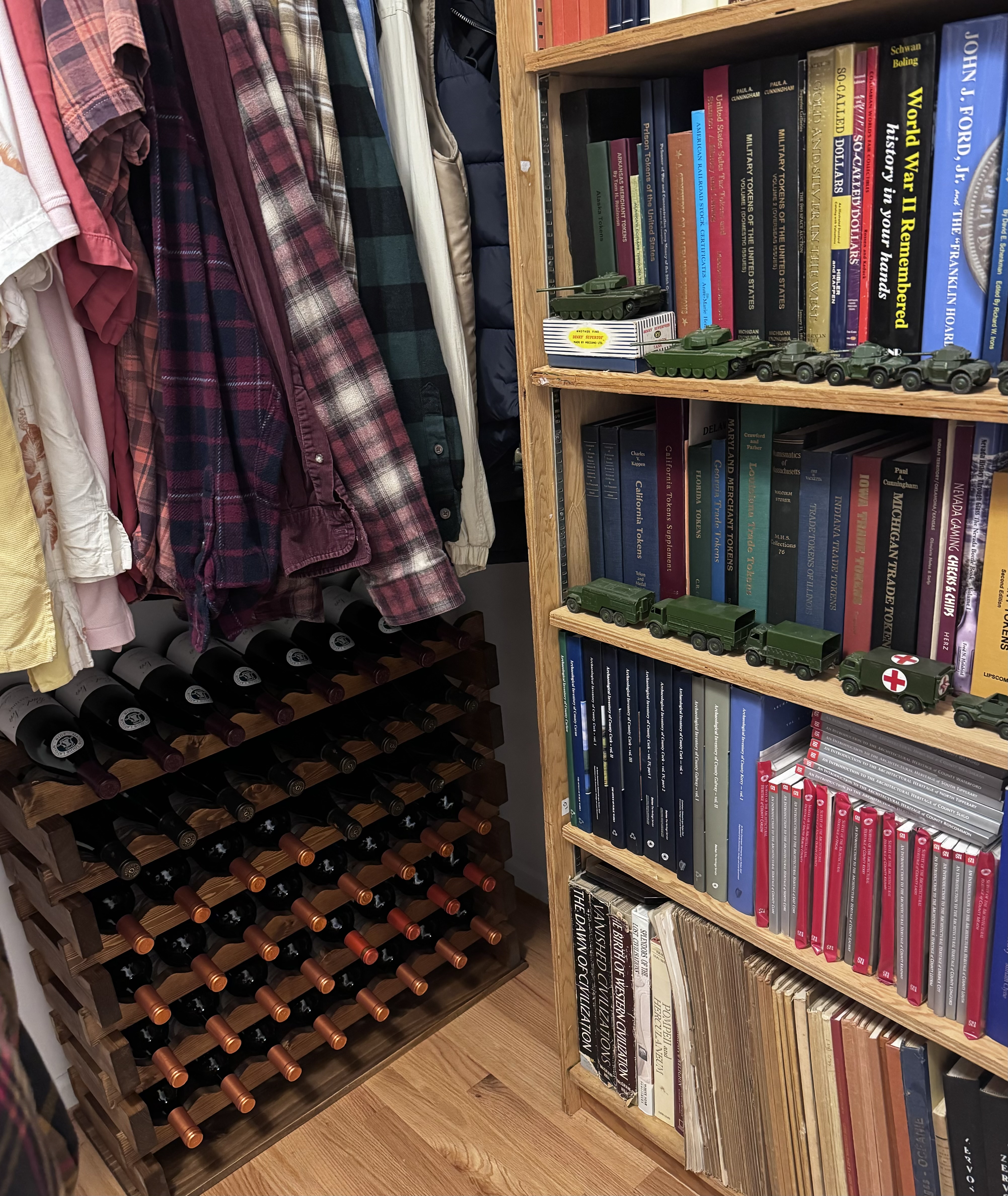 Горжусь своим! Сам отшкурил и склеил wine racks, поставили в клозете.