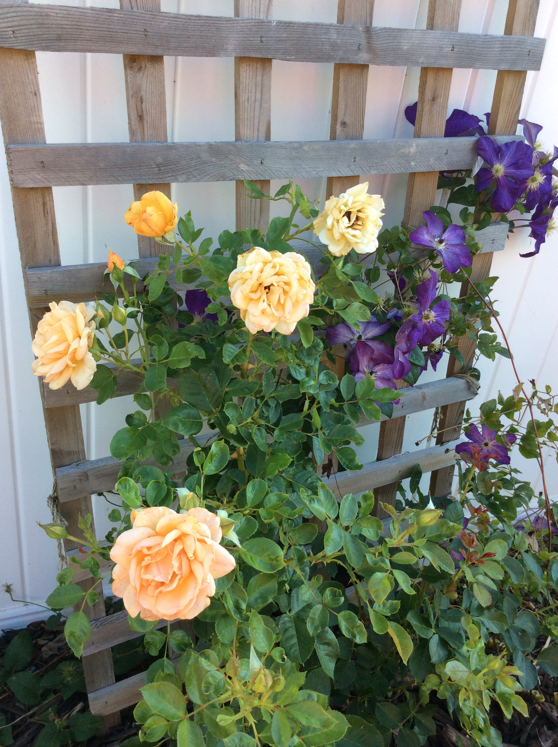 Мой новый клаймбер Garden Sun На собственном корню. Сажала в прошлом году. В середине лета. Перед этим, долго держала в контейнере в котором она пришла. Поэтому, как бы шанса разростить у неё особо не было. Крупный план был сделан в прошлом году. В этом году она почему то выглядит потрёпанной. Хотя цветом я довольна. Должна быть не болячая. На последней фотке видны все стадии цветения.