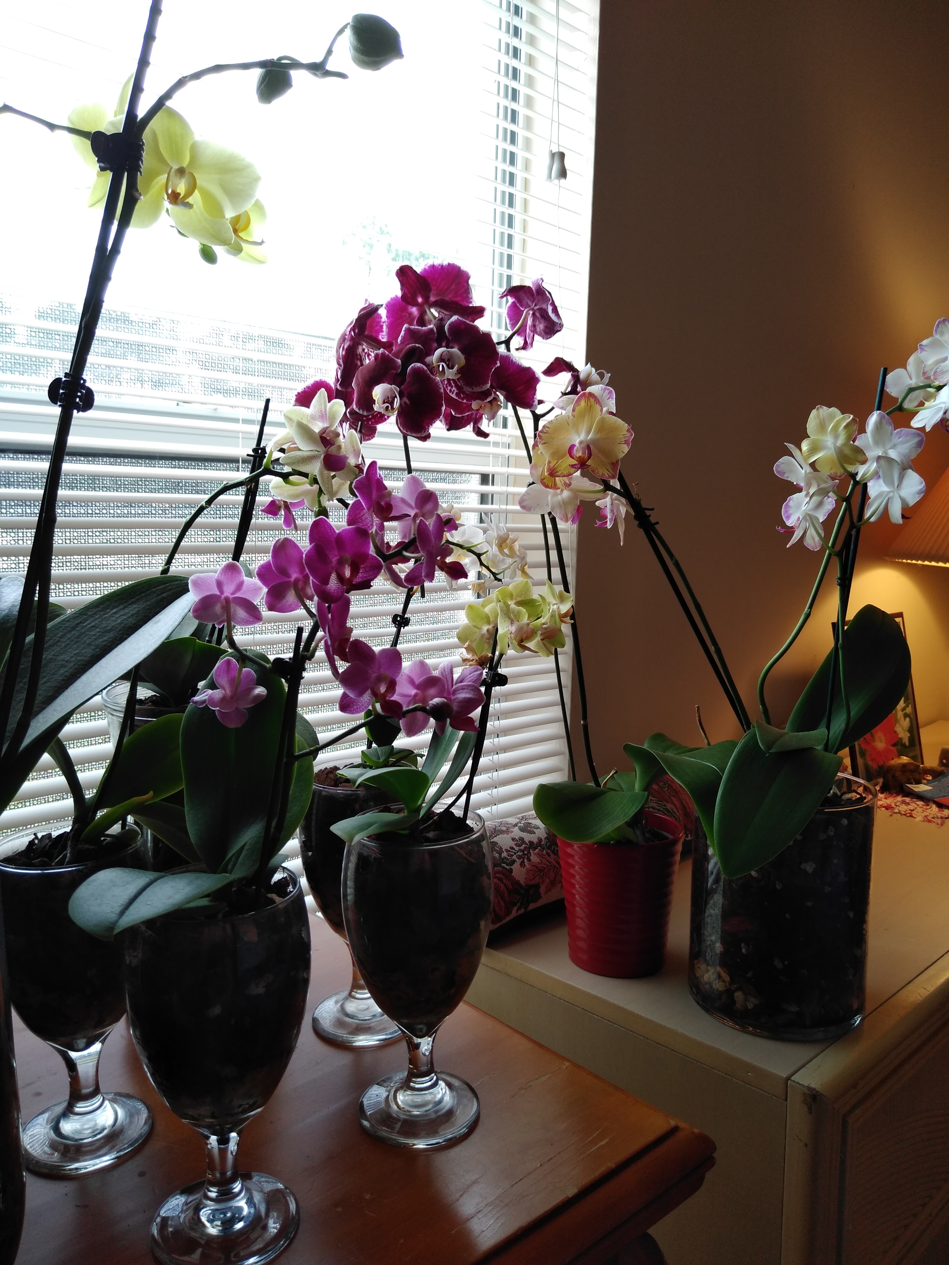 Baylee писал(а): Adolocha писал(а): Baylee писал(а): Ленусь, замечательное "орхидейное" окно! Прямо как на парад выстроились Оклахома, с Весной! Давай-давай нам псис на цветущей вишенке Мозаичный горшочек- супер!  Давай еще. По вазам. Смотрите, что у меня получилось... Помните моего Монстрика (белая, 4 цветоноса)? Так вот в последнее цветение он намонстрячил всего два. Показалось мне, что тесно ему стала (был в прямой, узкой вазе из Волмарта). И субстрат в болотце превратился. Короче, пересадила в бОльшую, где горло уже пузика. И стал мой Монстрик загибаться. Обнаружила это буквально несколько дней назад... Срезала один цветонос, сегодня второй... попробую его реанимировать. А цветоносы срезала, чтоб орхе полегчало? Ты попробуй на них деток вырастить, раз уж срезала. Или мне высылай вместе с той конопатой;-) Едем дальше, возвращаясь к вопросу об объёме вазы. Может было 4 цветоноса, потому что корням было тесно? Я все думаю, нужно мне мои пересаживать или нет. Ох, прости, мать, не скумекала... выкинула безвозвратно... уже цветы засыхали. А крапчатая еще себе цветет... про крапчатую помню  Ты крапчатую когда будешь стричь, ты там конкретный сенокос произведи, разнообразь мою коллекцию:-) Все мои орхи , так же как у Оклахомы, очень поздние в этом году. С января месяца жду цветения через 3 недели. И каждые 3 недели понимаю, что не планируют пока распускаться. Стрелки с середины ноября растят. Давно пора бы распуститься. У всех уже красота, а у меня стрелки все ещё растут. Устала прям.