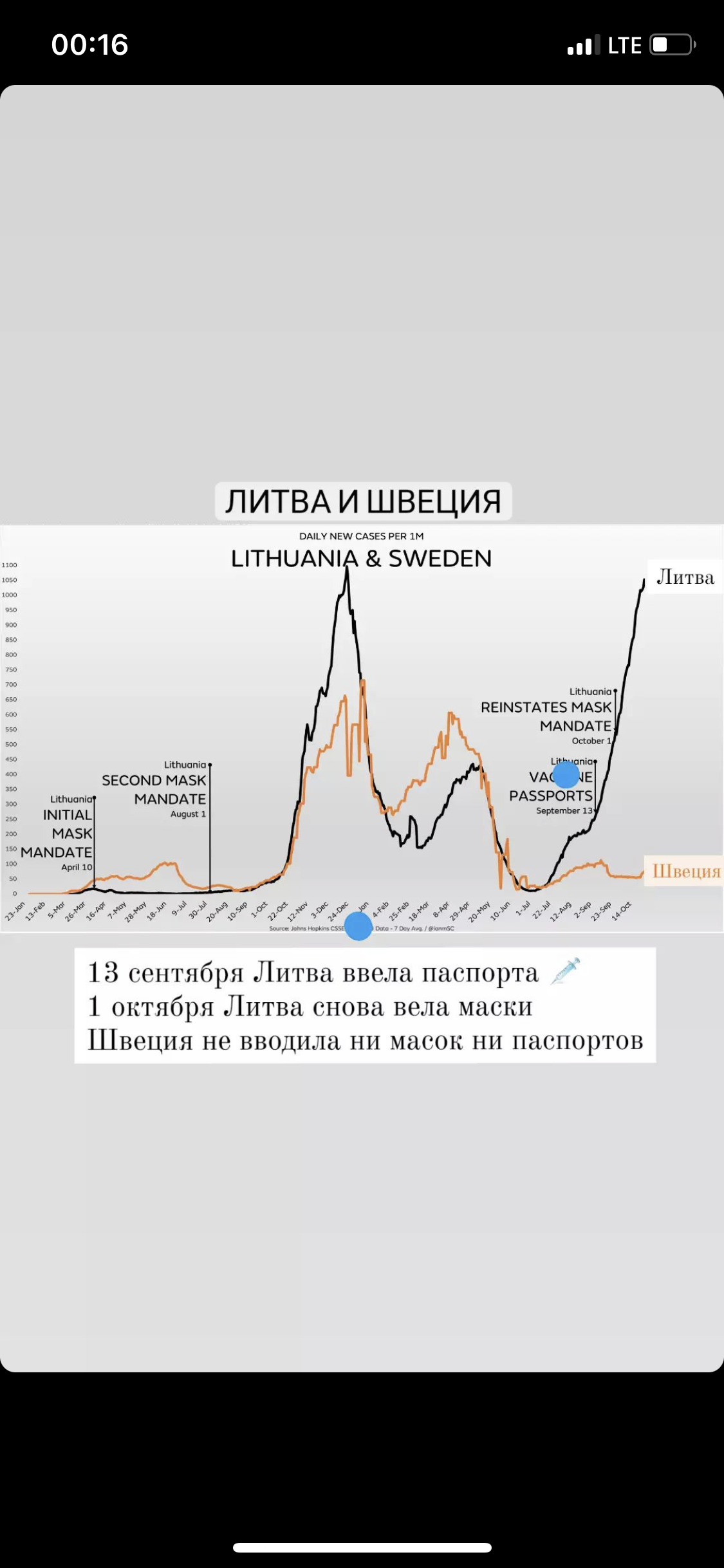 Amalia_Ca писал(а): .. Швеция 70% вакцинированных, что касается Литвы и Латвии там большой процент русскоязычных кто смотрит только Русское телевидение, они и тормозят вакцинированние. Латвия закрылась на локдаун, Covid заболевание растёт, большая часть не вакцинированных это русскоязычное население. In Latvia, nearly 90% of those who died of COVID-19 last month were not vaccinated, and over 88% of virus patients now in the hospital are not vaccinated,  official figures showed Tuesday as the Baltic country endures a monthlong lockdown.