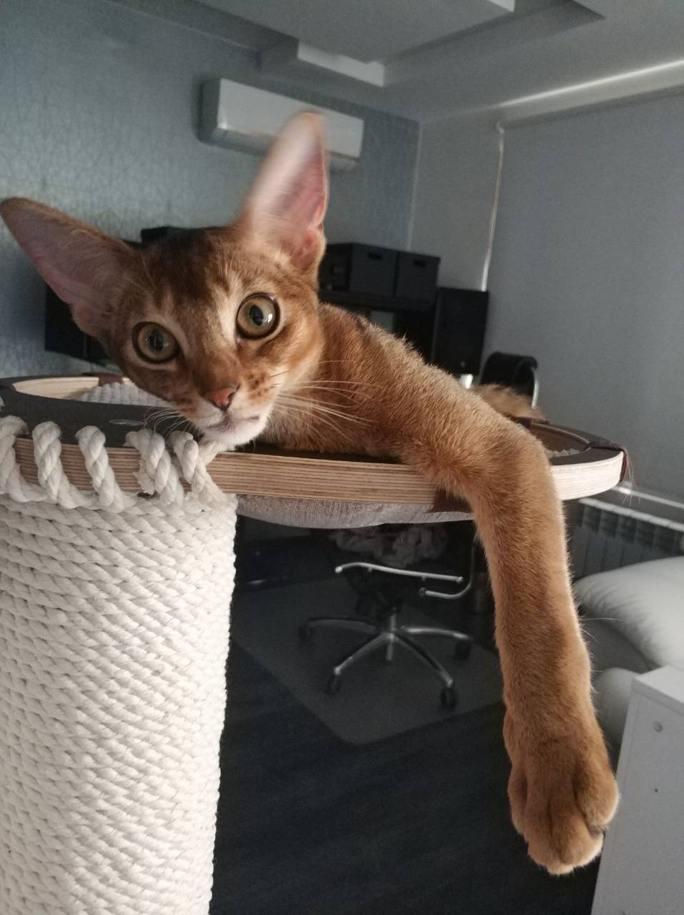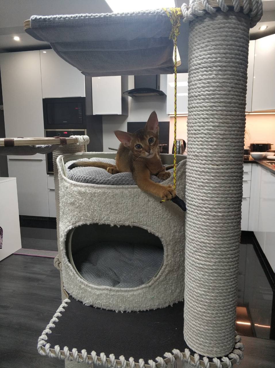 Да там у многих сейчас такого плана дизайн. И кошечка под дизайн. Но дочка подруги всегда любила жовотных, жалела, подбирала, дома искала. Сейчас появился статус, а с ним и котейка непростая. Еще не разговаривала, мне интересно характер какой. Ладошка мощная такая.