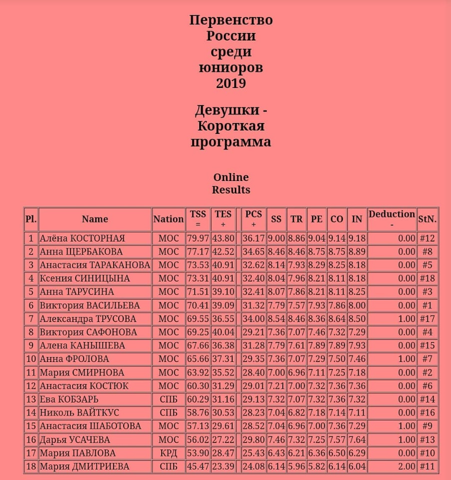 Алена Косторная все таки необыкновенная  Хорошо хоть в финале Гран-При победила, а то с этими четверными не поспоришь, если конечно их делают. Аксель у ней действительно просто вау, может все-таки в следующем взрослом сезоне попробует тройной делать, хотя может ей и не надо особо, она в каком-то интервью говорила что хочет стать нейрохирургом Канышева что-то совсем неудачно выступила и в короткой и в произвольной, может приболела. Мне Тараканова еще нравится, есть в ней какая-то харизма, прыжки хорошие, еще бы стабильности ей. Говорят четверные учит.