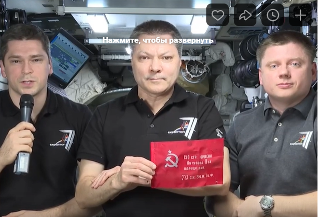 Российский экипаж МКС поздравил соотечественников с Днём Победы.