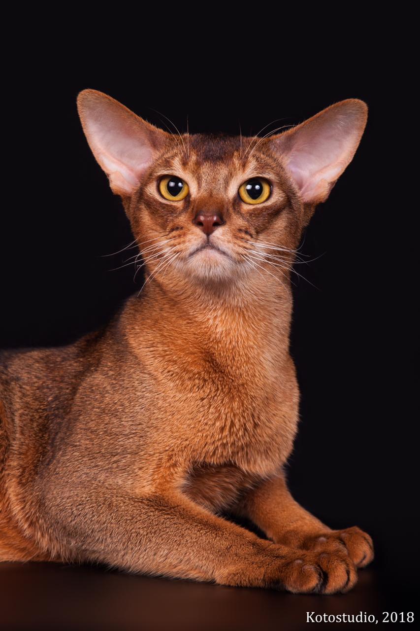 абиссинцы очень грациозные котяры, да и по характеру, вроде, неплохие, покладистые. Фото морды лица ориентала у меня нет, поставлю очень похожего на нашего. Он любимец моей невестки, в принципе это ее кот, а рыжий - кот сына, такое вот разделение  Вложение: