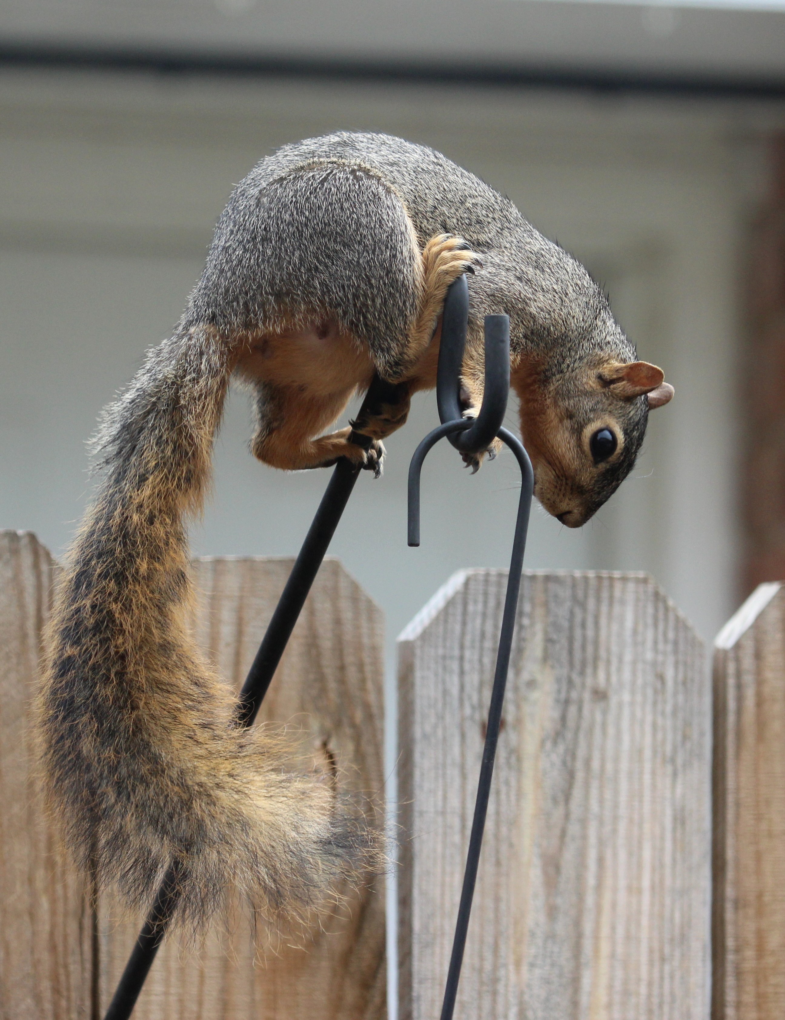 Это крапивник Wren, скорее всего Carolina Wren (их несоклько видов, но около домов пасутся именно каролинские). Не очень четко видно. Они довольно храбрые птички. в этом году у меня прямо около двери гнездо забацали и сновали просто перед носом. Голосистые.