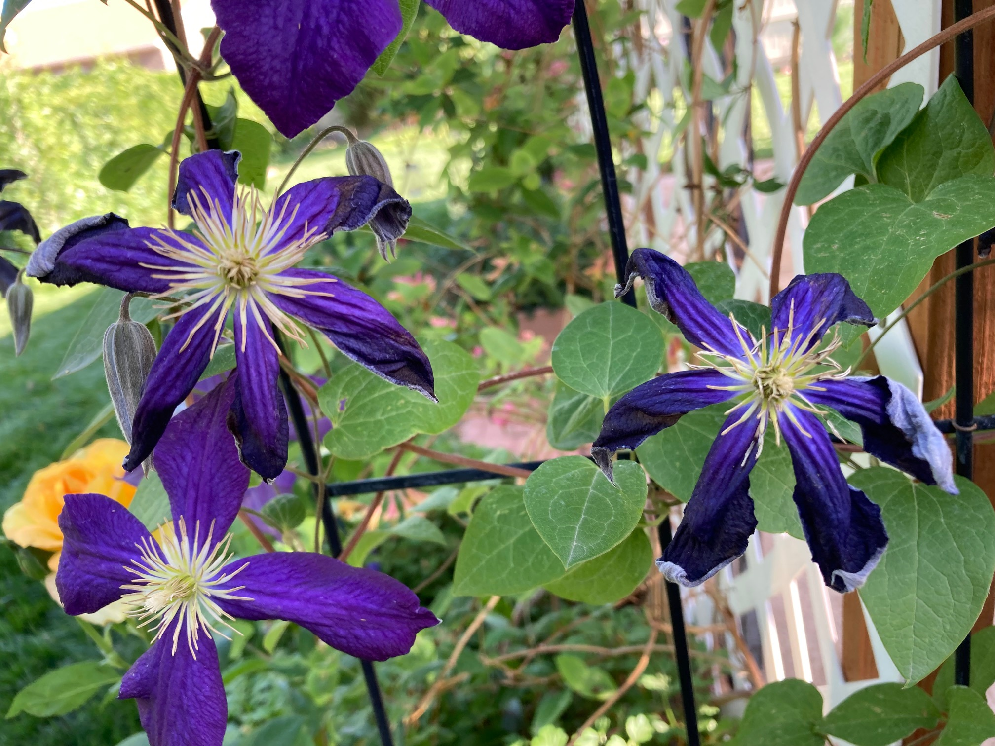 Роза, надо же клематис у тебя цветет..  Во Флориде ни у кого не видела. Наверное, все ж холодные температуры зимой помогают.Как я их люблю и пионы, и дельфиниумы...Вообще, на севере такой выбор цветов.