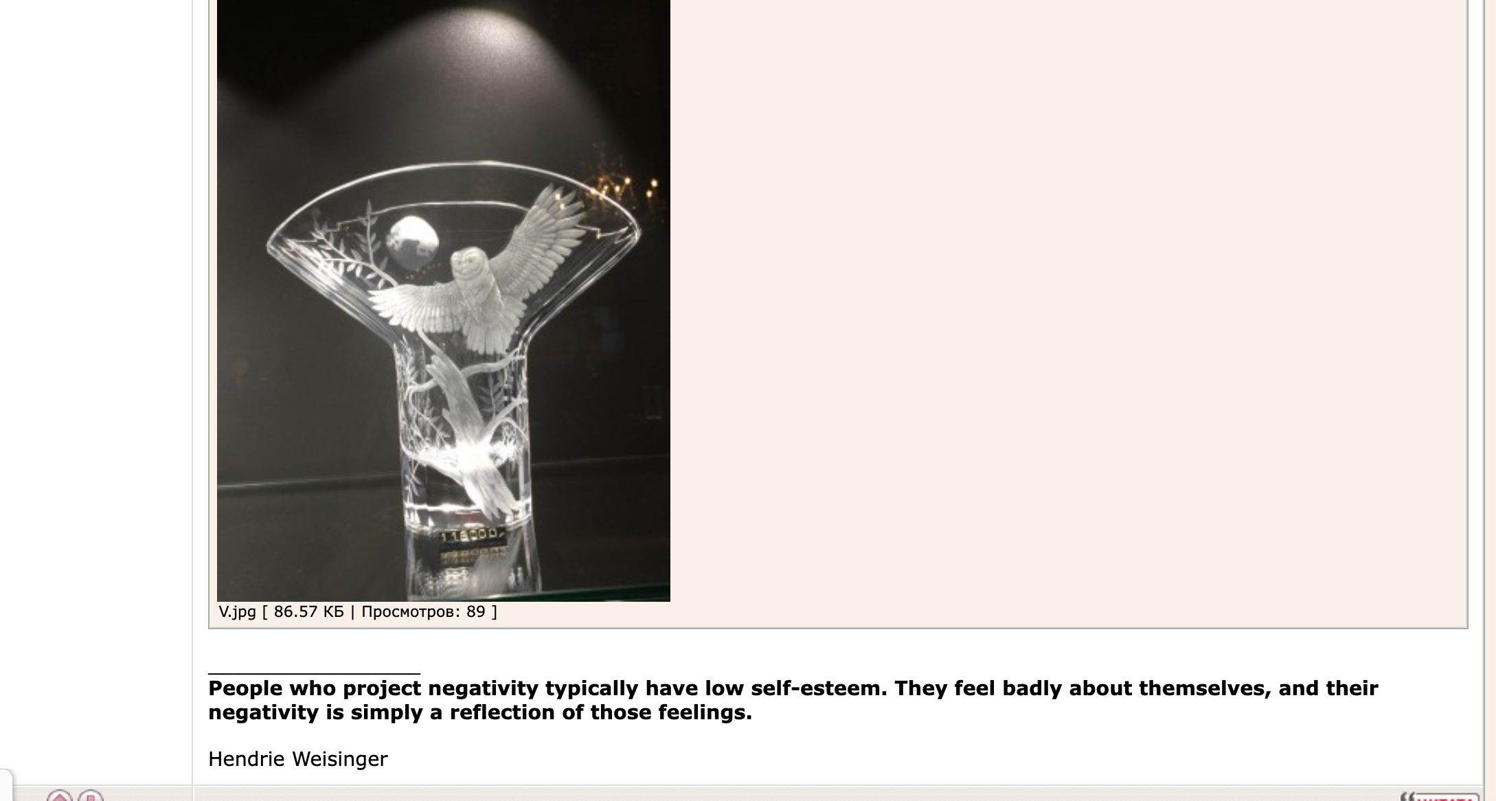 NatMerren писал(а): Jaxi писал(а): Там такое стекло...  .Обычно все эти музеи, экспонаты, частенько забываются, но не эти..Хотелось бы подобную вазу дома иметь.Можно бесконечно разглядывать..  Как они так делают, все в толще стекла.Стоимость , как крыло у самолета... вазы красивые, говорят, и способ производства у них уникальный, нанимают советских бабушек, их на Западе пруд пруди, дают им ватные палочки и бабушки скрибуть-скрибуть... В толще стекла даже! Создавая волшебные дизайны! но это особенные бабушки нужны, физически развитые, с крепкими плечами и кистями. Они куда угодно проникнут. Вряд ли эта ваза как крыло самолета стоит, ну разве что советский Як-1. А если хочется бюджетный вариант, то можно купить пейпер вейт, они простые по сравнению с вазами, но дешевые и можно сидеть и бесконечно рассматривать... Если делать больше нечего, конечно. Вот у меня такой пейпер вейт, и еще с другими дизайнами, птички с цветочками и дельфины с фейерверками. Там вообще-то даже цены есть...  Зачем сравновать несравнимое?