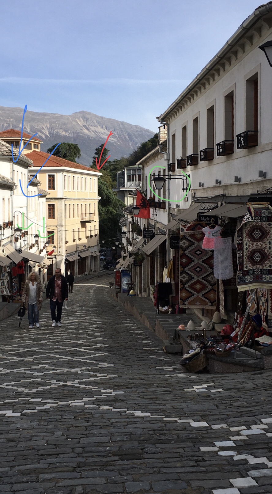 Потрясающие улочки Gjirokaster City in Albania Shitet  Бетя на твоей фотке флаг Албании - двуглавый орёл чёрный на красной крови албанских патриотов