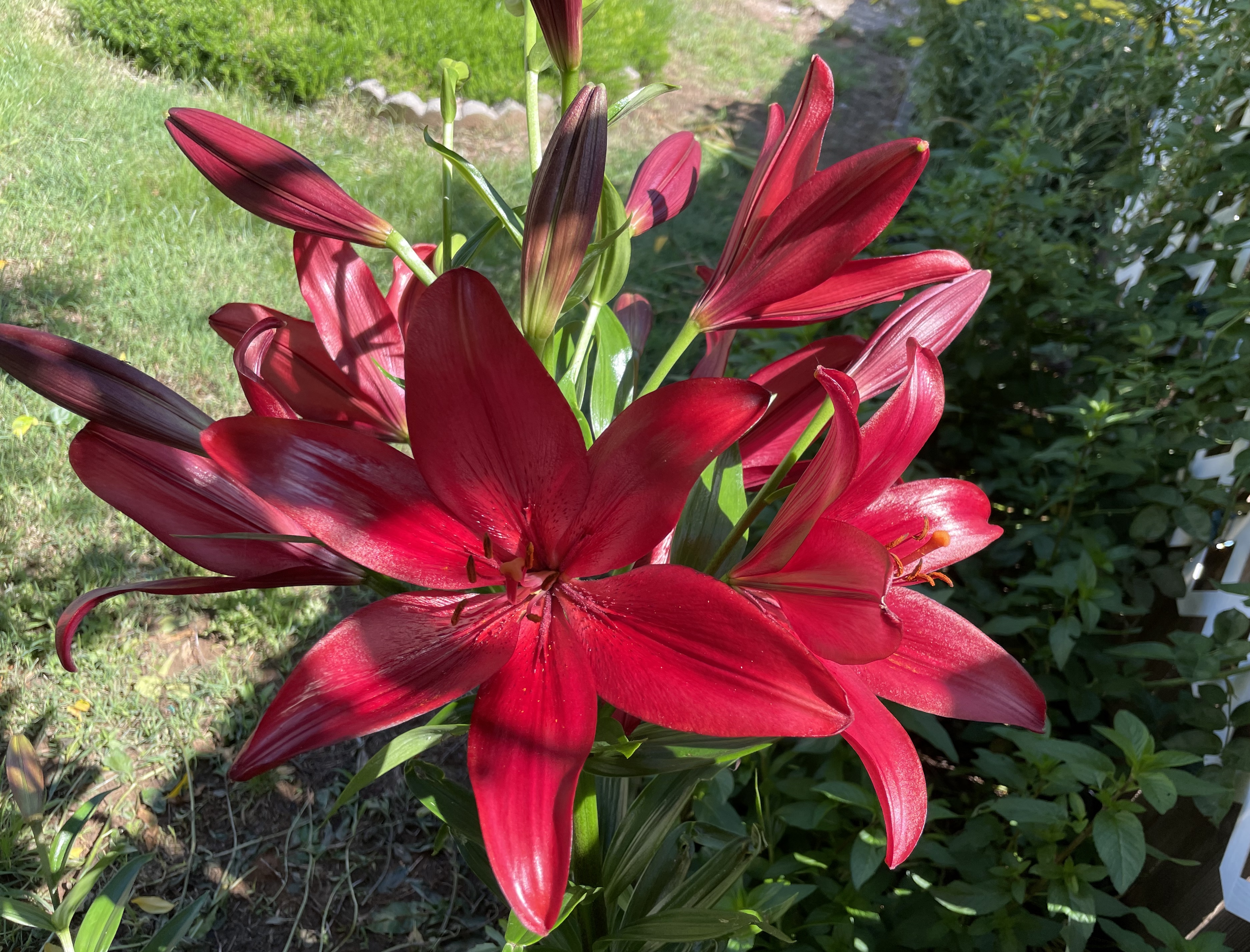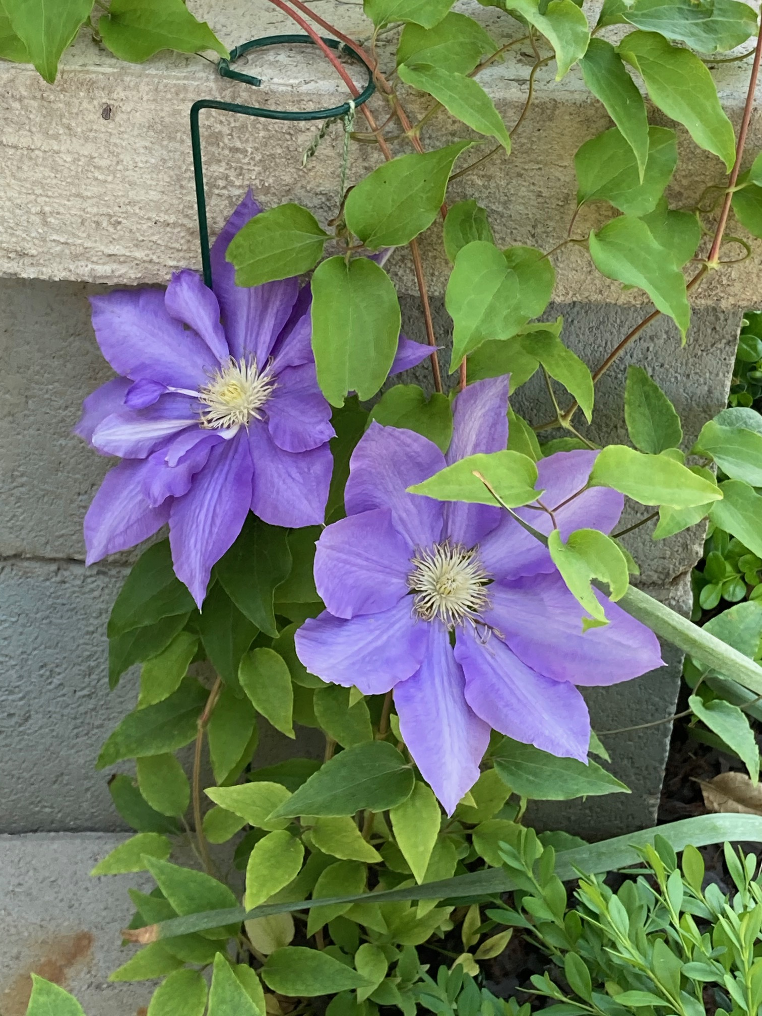 Lyuna писал(а): Rosamunda, очень красивые цветы! Мужу моему очень нрава первое фото ( не знаю как называется). Я вот купила и посадила вокруг light post, выбросила коробку, а теперь без названия остались  Цвет такой же как у Вас! Не дождусь, когда наша взойдёт. я стараюсь сохранять этикетки от растений всегда, если не теряю их потом в садовом хламе в гараже Я сама не помню названия моих клематисов - у меня их 8 штук на сегодняшний день. (надо порыться в гараже, найти их названия  ) Но они все должны цвести в разное время года, поэтому сфоткала только то что уже зацвело. А посадила я их только в прошлом году, и пока даже не видела большинство из них цветущих в реальности ещё. Ждёмс