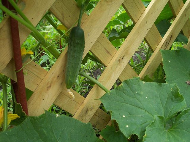 огурчики у меня вот так растут. Очень удобно - места много не зaнимают и собирать удобно.
