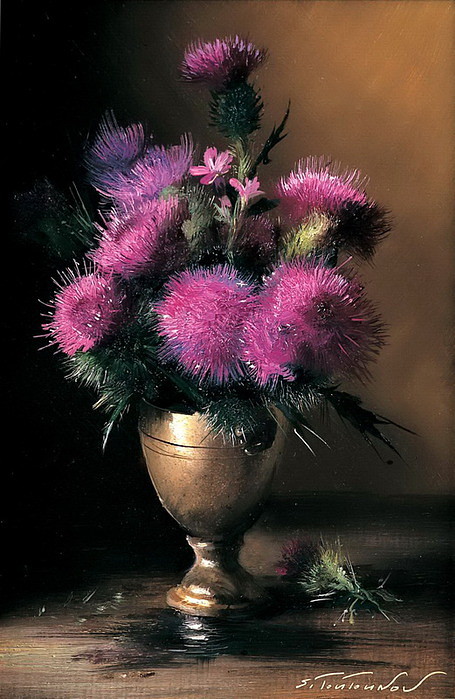 Матьдочери, спасибо, что не даёте заглохнуть теме. Мы ваши картины смотрим, если даже не обсуждаем.  Пионы понравились. А на третьей картине с цветами наш домик в Канаде. :) Я сейчас там, далеко от своей студии. Когда доберусь туда, ещё что-нибудь намалюю.