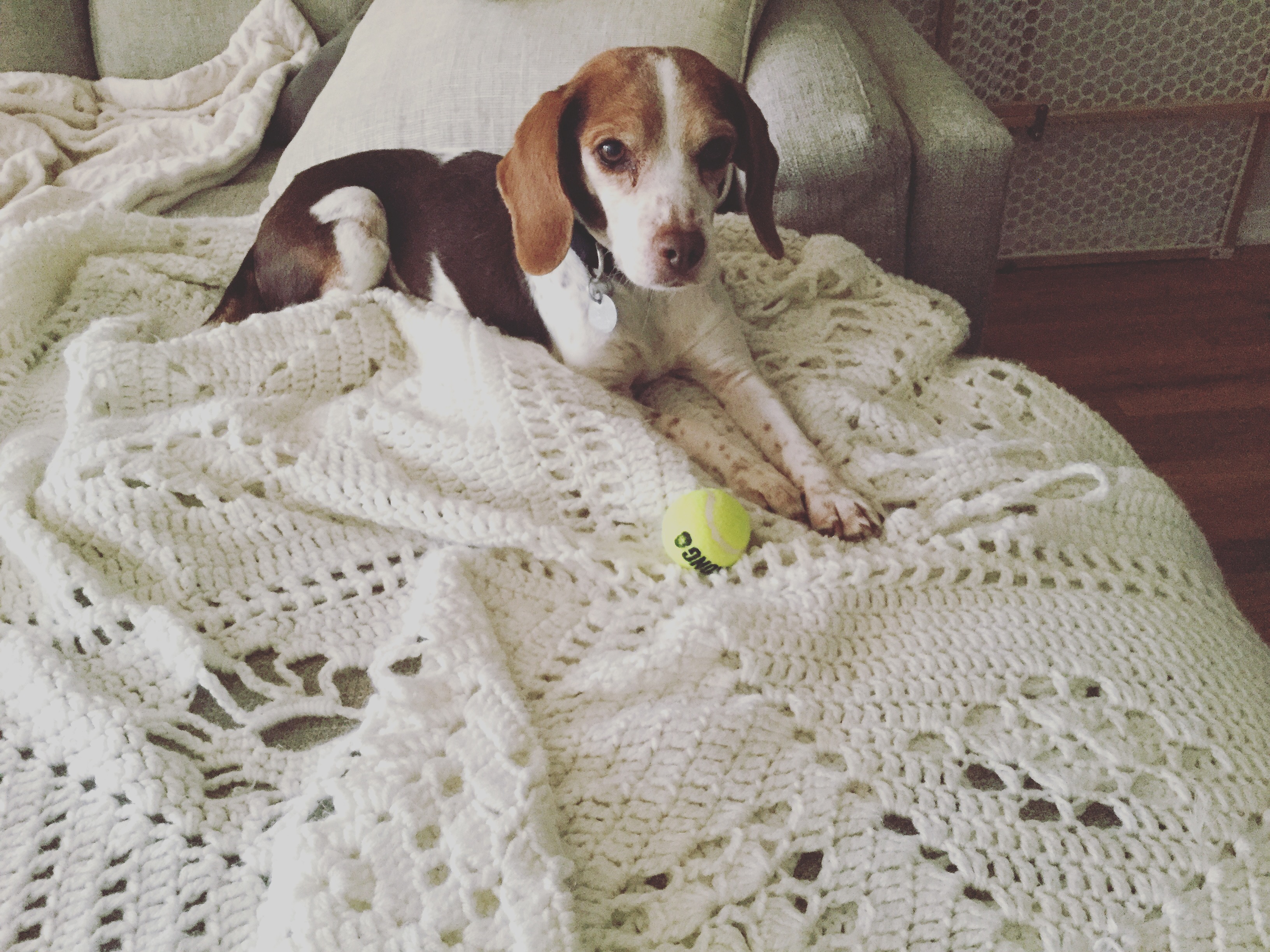 Красивая собачка.  Хорошо, что просто постель сделала себе. У Мии собачки регулярно бегали писять на юбку.  Говорила, что задолбалась ее стирать ежедневно.