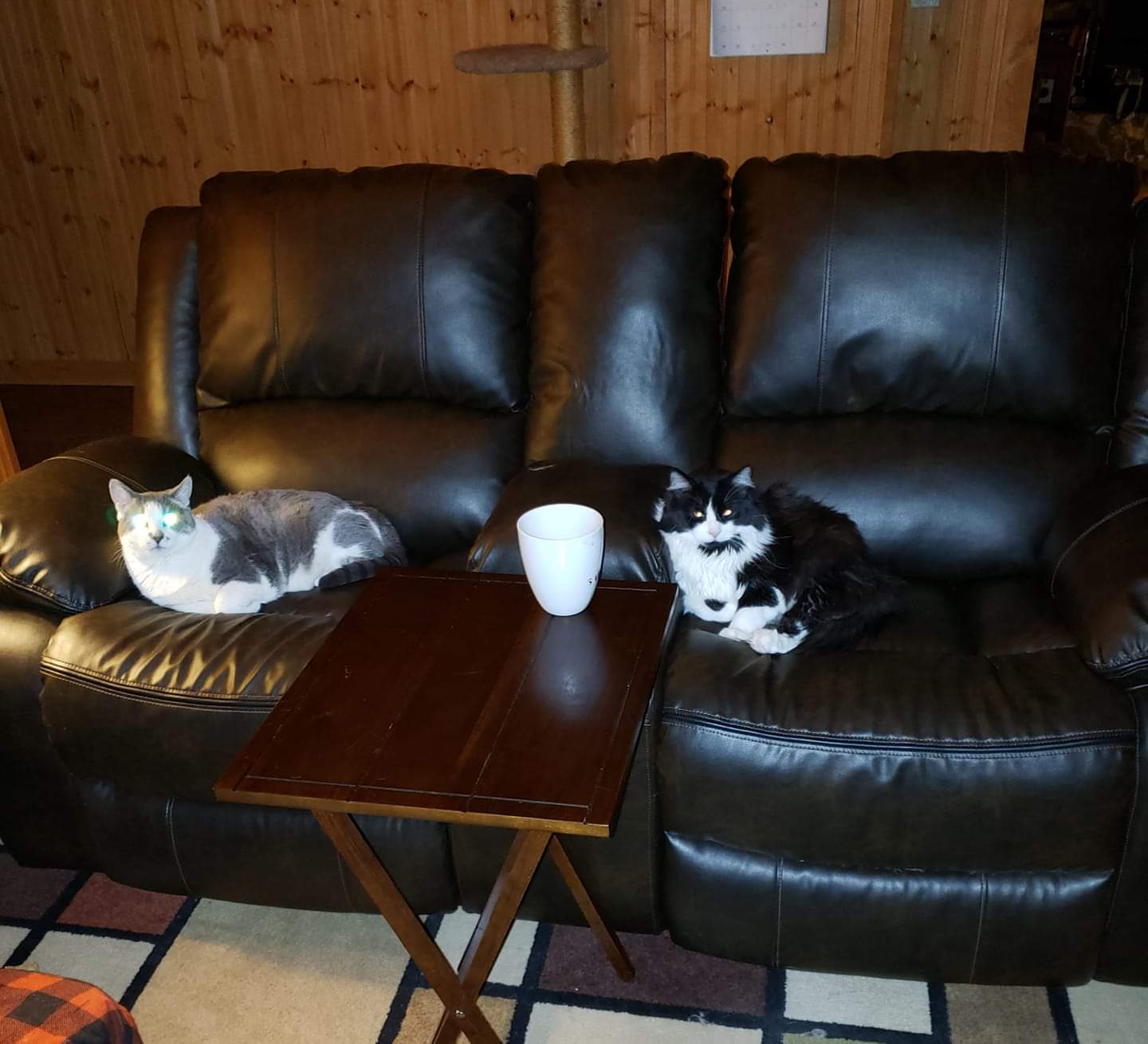 Вася con Diaz писал(а): Смотрела-смотрела , не поняла, одна и та же , или разные кошки у "Erie" ? Кот и кошка. Вдвоем смотрят на пустые стены, вдвоем карабкались на тот косяк двери когда были помоложе. Сейчас они весят 16 и 18 паундов, я надеюсь что они больше так прыгать не будут, а то не дай бог оборвут дверь.