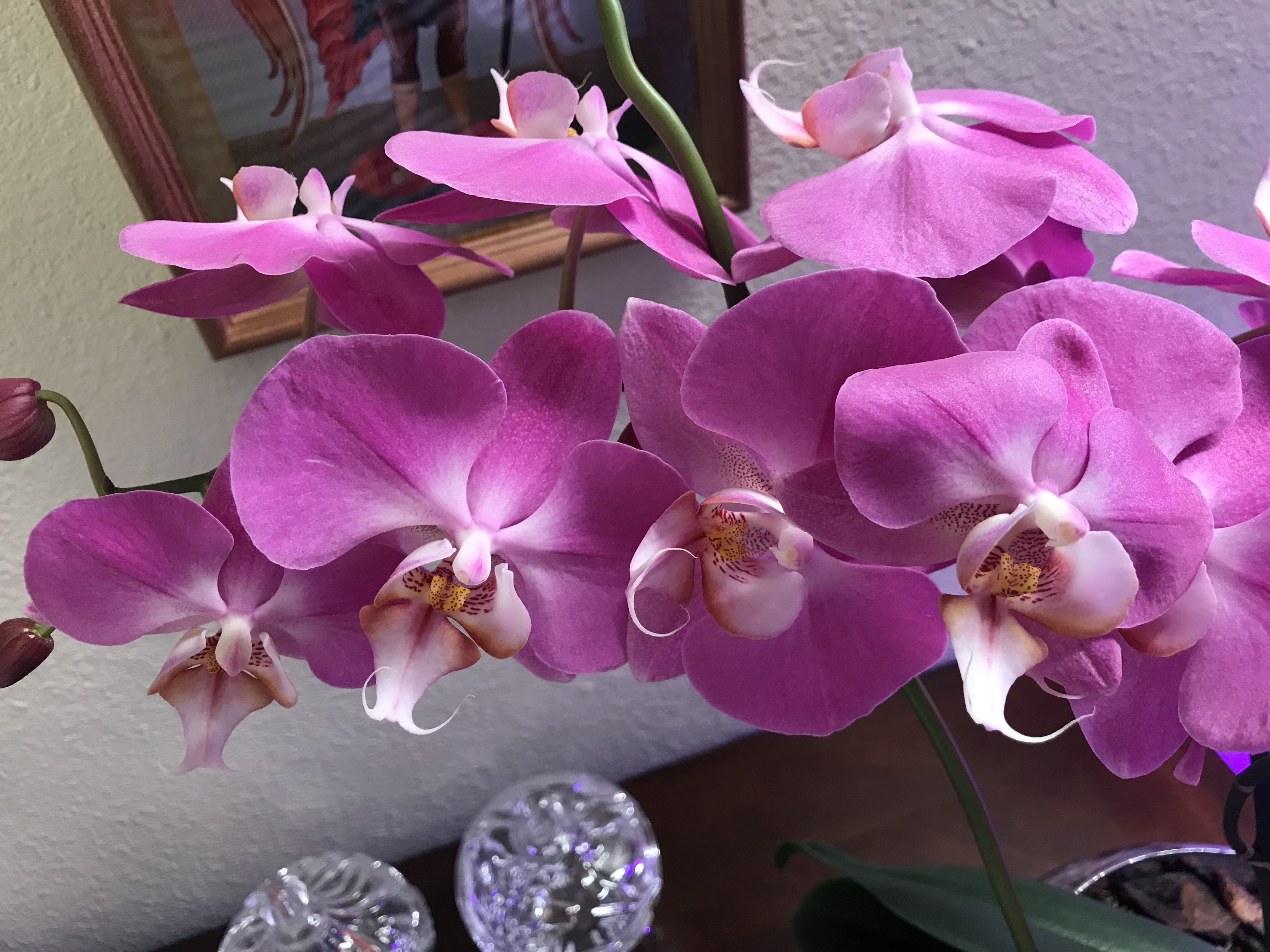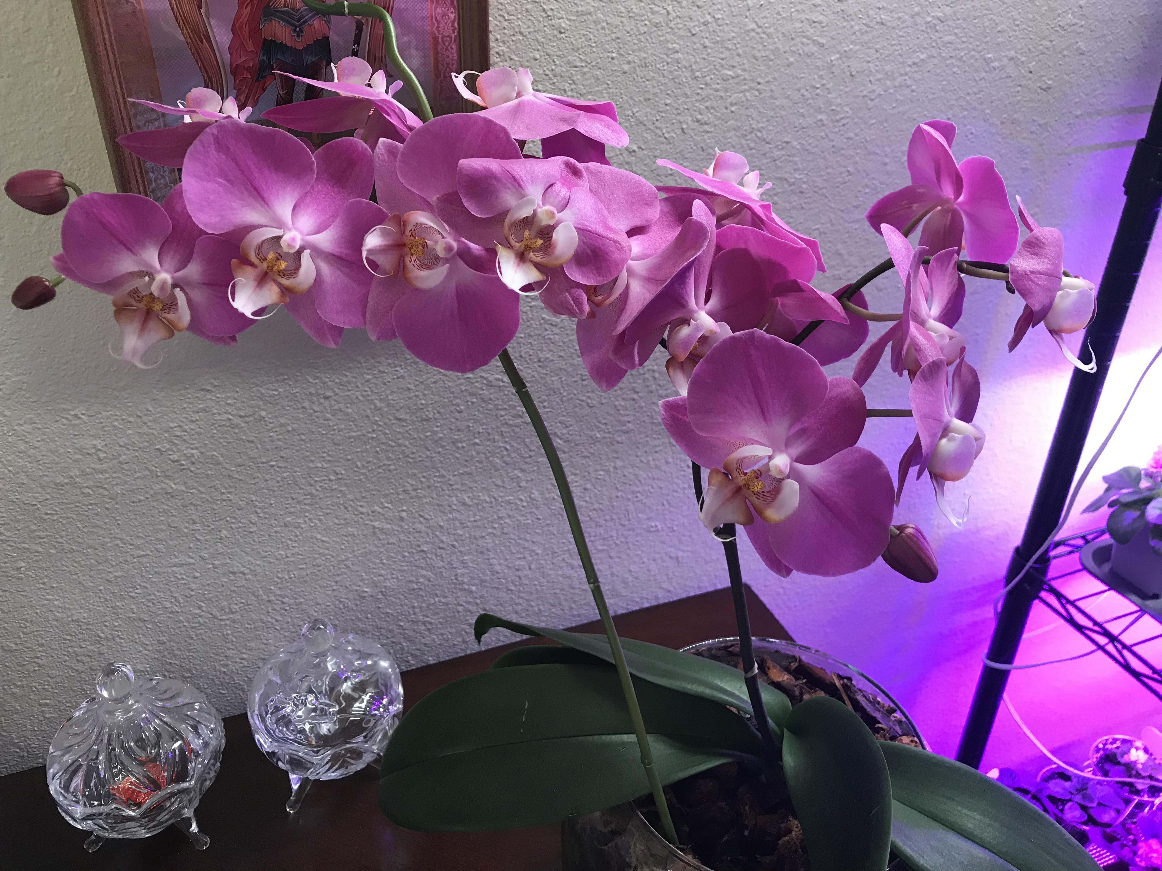Девочки у меня безымянная с Икеи расцвела, она уже цвела на три цветоноса, все были разветвлённые, сейчас один вот так цветёт и второй только выпустила