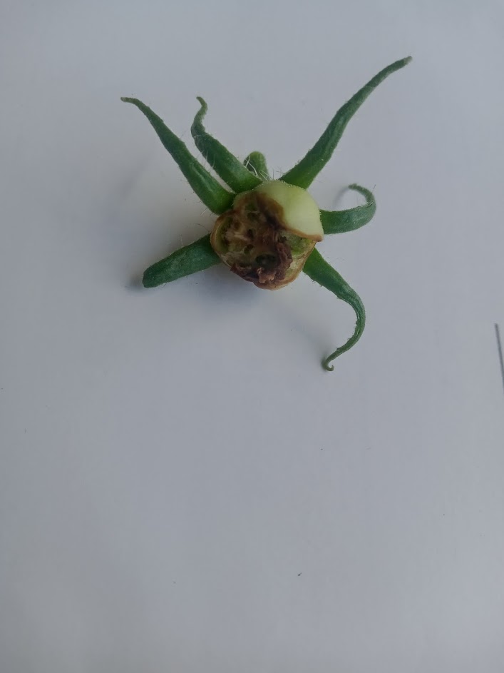 Спасибо, Магнолия, только из чего оно сделано? Химии не хочется ж. Я была неправа что "помидорок пока нет", оказывается завязались уже кое-где. Передвинула сегодня этот тяжеленнный горшок в другое месте, где утром солнце, после обеда и до следующего утра - тень (а такого чтобы утром солнце, после обеда тень, а вечером опять солнце - я не могу придумать как такое возможно :) . Поставила термометр, и где ж я вам возьму не больше 30С, если погода жарче? Вообще в нашей местности фермеры продают бешеное кол-во помидоров - значит должны хорошо расти. Нашла одну помидорку которая начала гнить что ли, эта веточка сразу и обломилась у меня в руке. Что это? blossom end rot и есть? отчего?