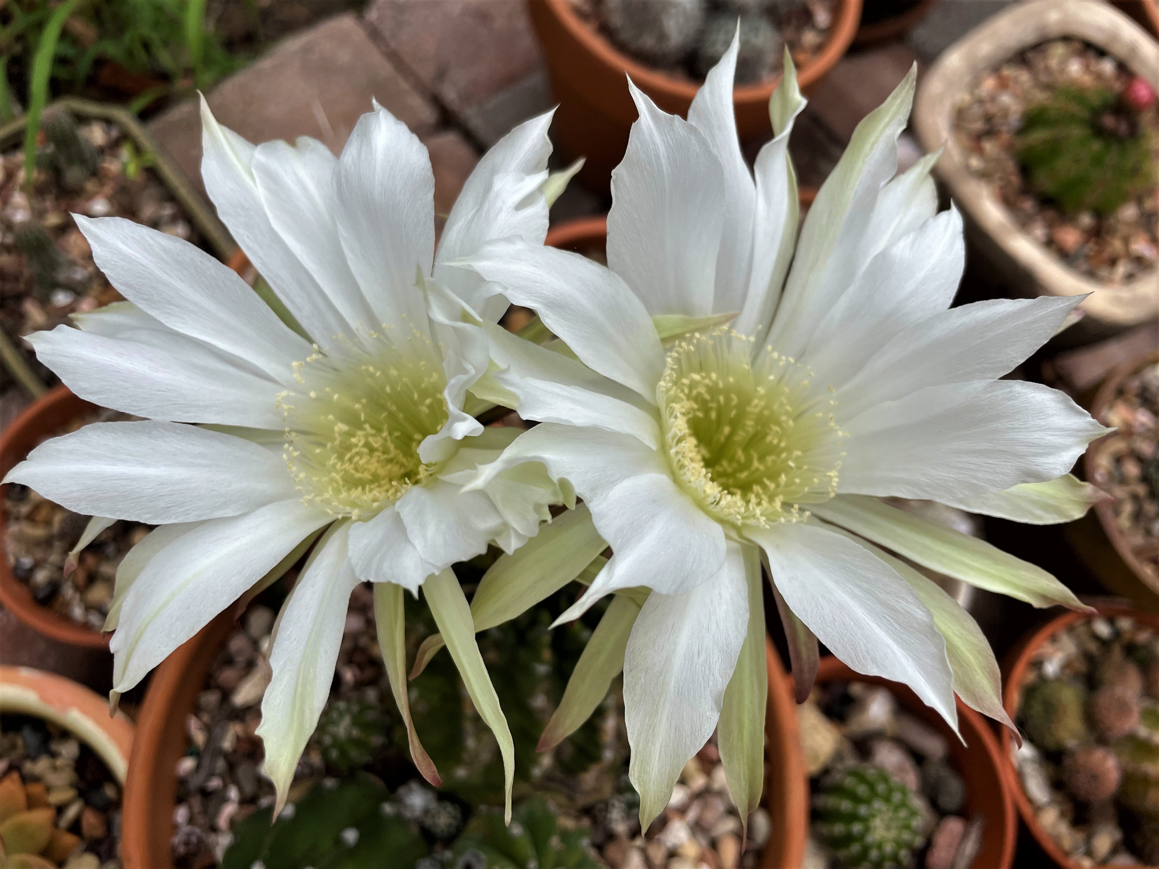 какой языкастый Baylee писал(а): Хом, белый кактус- сказка! Собакин, интересующийся цветами- сполошная милота... так и хочется его потискать : Кактусы даже не зарекайся предлагать : С колючками, да еще в неподходящем климате связываться не буду Я тут мимоходом приобрела парочку адешек... один должен быть с шикарными цветами, другой скорее всего с обычными, но фигура- просто отпад Фотки- ASAP  ихде это ты их мимоходом находишь? у нас что-то даже с микроскопом не видать. твой перезимовал хорошо, листочки, правда, сбрасывал (может, это так и надо? он в холоде стоял) Сейчас отрастил новые, но совсем недавно, так лысый и стоял.Интересно. скольео ему до цветения расти. Про кактусы я не собиралась предлагать, но ты меня озадачила  не все они с колючками, и тчо не так с вашим климатом? может, поищем тчо специально для тебя? вот, например, такие недавно *выбросили* в Волмарте - лысый, и цвести собирается. Я не люблю привитые, но других не было, ну и на своих корнях они будут намного дороже. Потом попробую отделить, наверное. Вот еще у нас - продолжение банкета сегодня было Этот кактус в рпоошлом году купила, был здоровенный глистер. из большого горшка выпирал, стала пересаживать - он разделился.Может, и к лучшему - одна часть не пережила зиму, второй стоял в чуть более теплом месте. Погиб намного бОльший кусок, к сожалению. Не представляю, как бы оно сейчас все вместе цвело