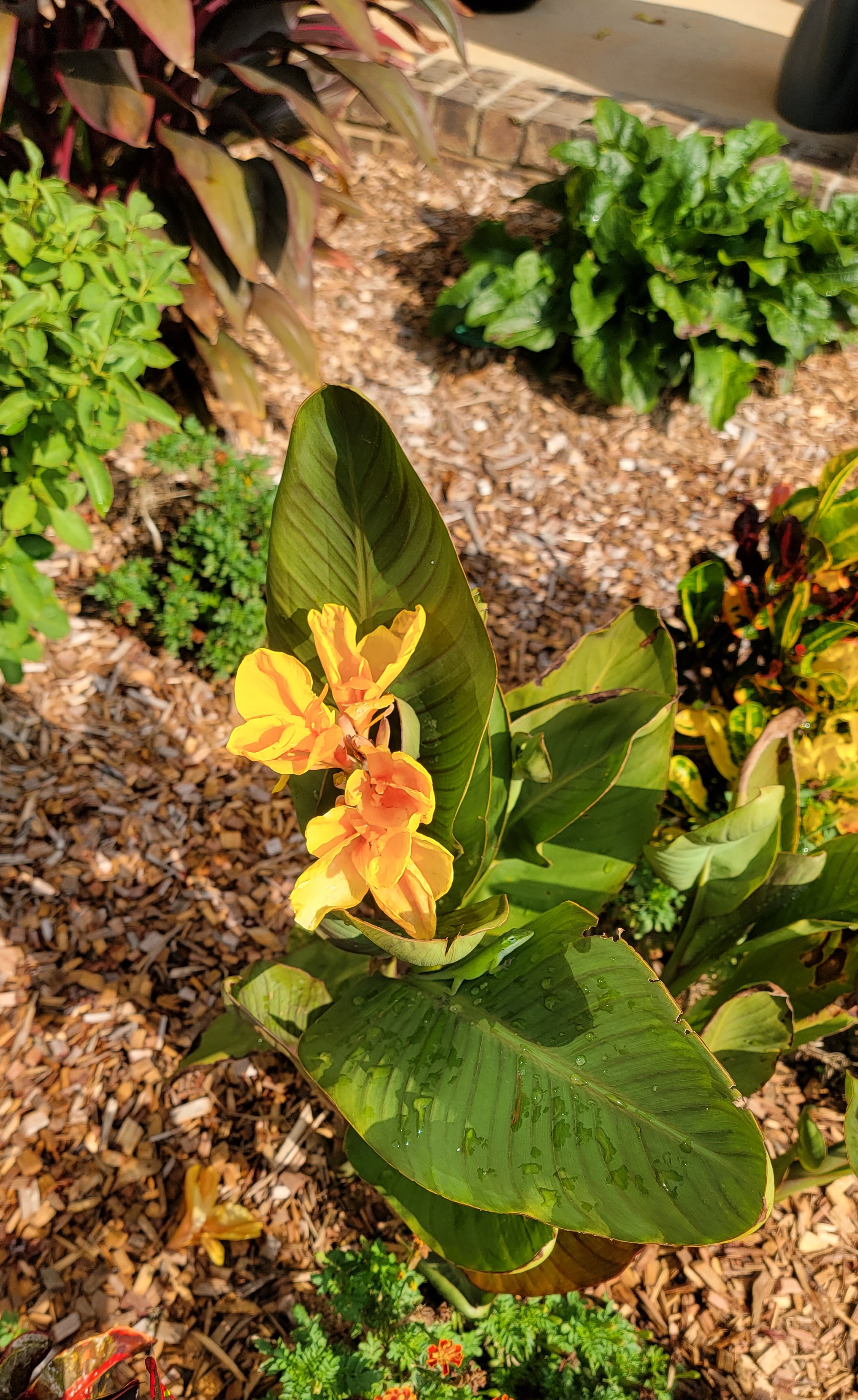 Baylee, какая красота у тебя!! А трава какая зеленая и здоровая! Ты вроде во Флориде живешь, не помню уже? Вообще эталон!! Желтая кана - красавица!! А слоник зацвел??