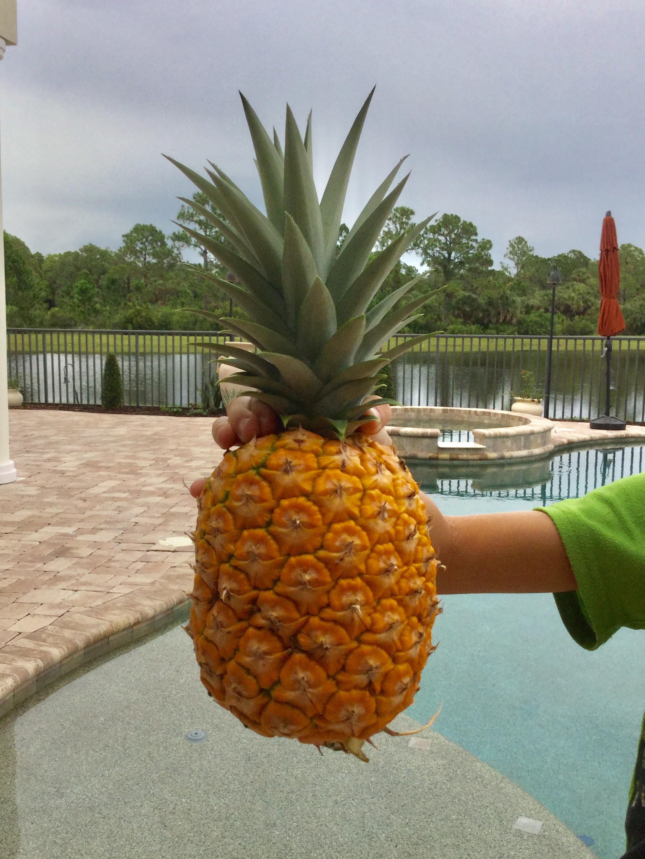 Съели мы ананас сегодня. Вкуснотища! Сладкущий и сочный, даже близко не сравнить с магазинными. В дом затаскивать не стала, побоялась, что отломиться в процессе. Каждое утро проверяла не упёрли ли. Можно было б ещё денек- два подержать, но решила не рисковать, от него ананасом уже за два метра пахло.