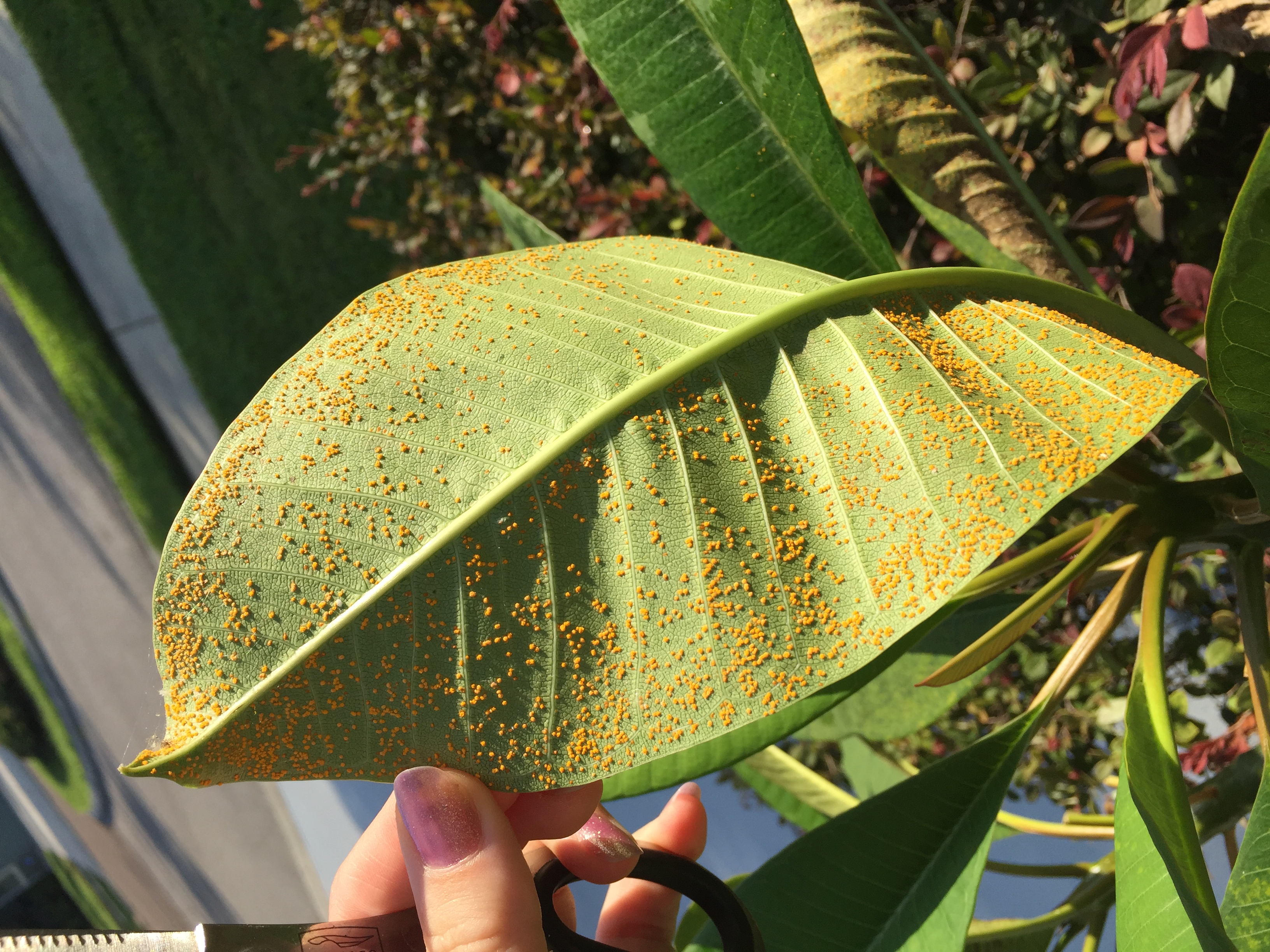 Девочки я не знаю как бороться, может у кого опыт есть,подскажите. По моему это rust называется, ржавчина. Убивает мой цветок ( плюмерия) и перескочила на инжир уже. Не помогает ничего, что пробовала.