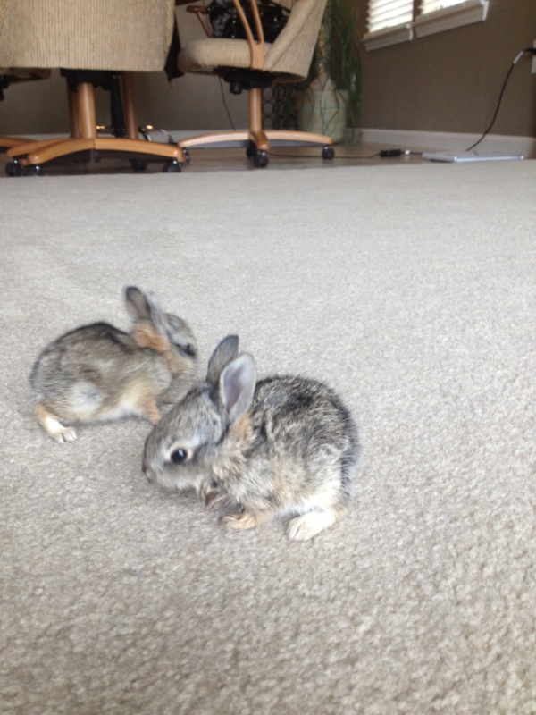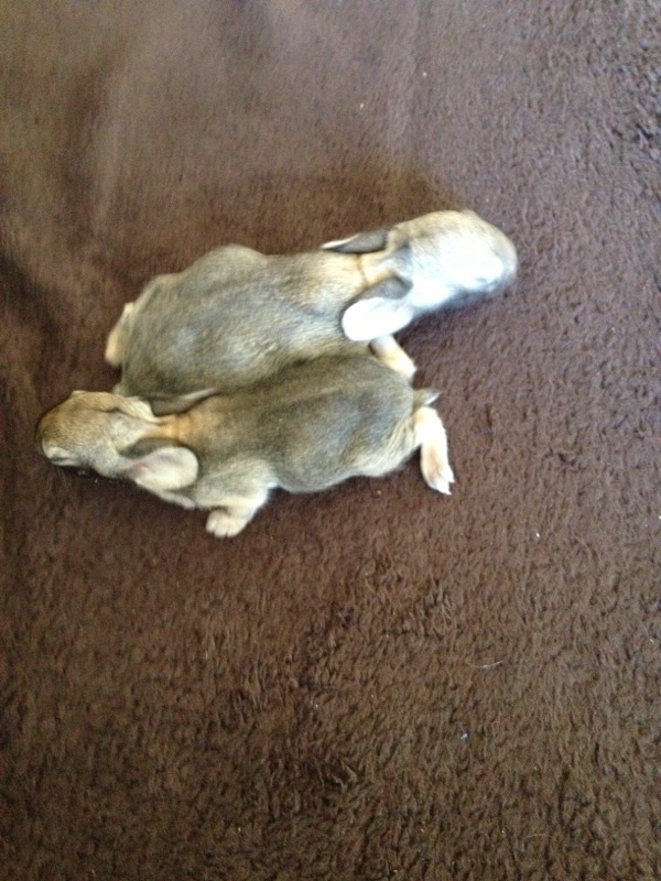 Девочки, а у нас крольчиха вывела крольчат на бэкъярде и пропала. Пришлось их выхаживать. Сначало ждали, что мамаша все же вернется и они были в коробке во дворе, но она не вернулась.. Может кайоты сьели ее, кто знает. 4 крольчонка. Вот кормлю их из соски уже третий денью Купила специальное питание с бутылочкой и соской в магазине для петс, сегодня утром один уже умер... Но он с самого начала был слабый, видно родился последним и может не удавалось ему пососать мамкиного молока...Один уже очень шустрый, не успел глаза открыть, как скакать начал! Тоже не знаю что с ними делать. Привыкли за 3 дня ко мне и не шарахаются, лезут ко мне как появляюсь.Отпустить никак не могу- совсем крошечные-еле на ладошке умещаются и ноги еще в стороны расползаются у двух. А третий хоть и шустрый, все равно маленький...